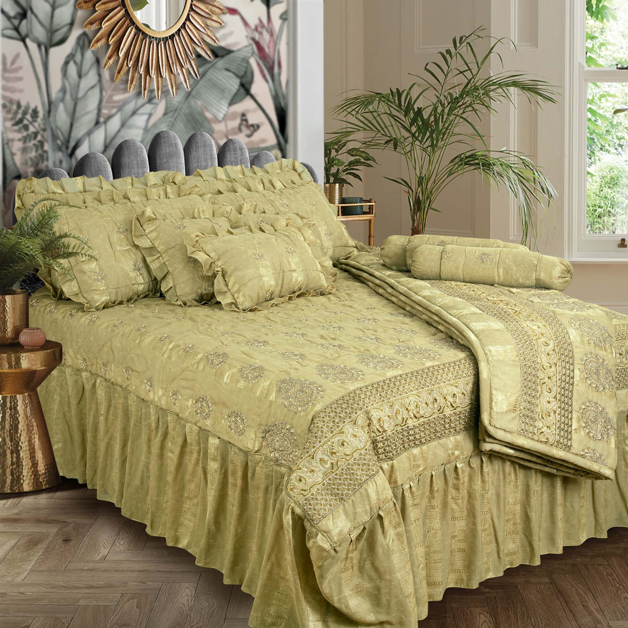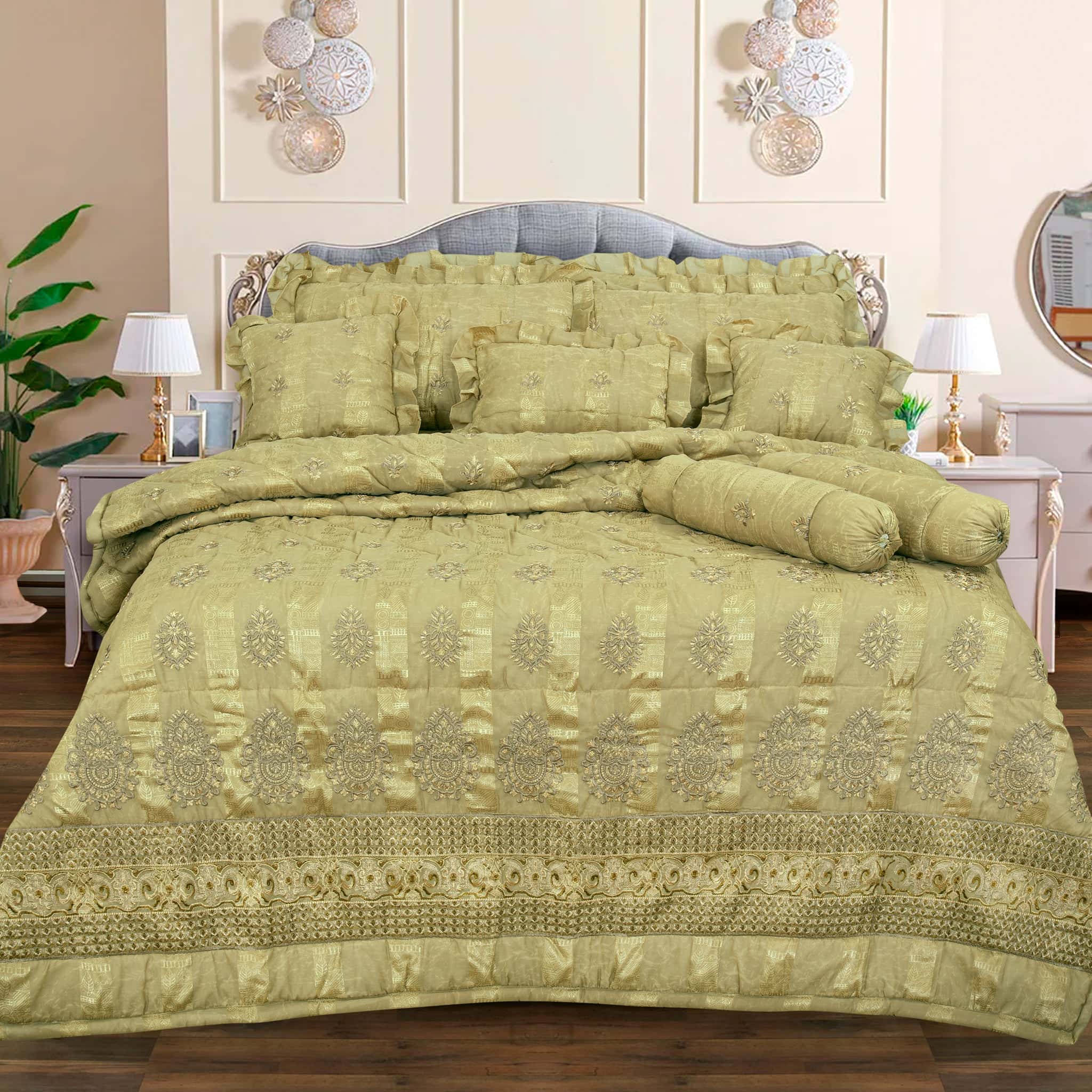 Chiffon embroidered 11 pcs bridal set (Dull Gold Beige)