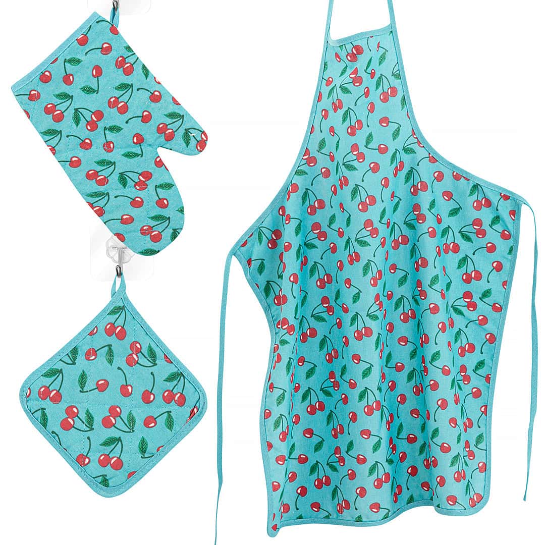 Kitchen Apron Quilted 6 Pcs Set (cherry)