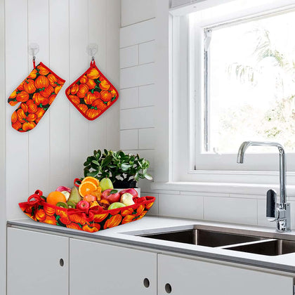 Kitchen Apron Quilted 6 Pcs Set (Pumpkin)