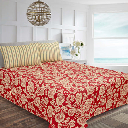 Make a luxurious statement with this striking Premium Cotton Percale Bedsheet, showcasing a rich, Crimson Red background contrasted by a bold Oversized White Floral Print. Crafted from high-quality cotton percale, this sheet is celebrated for its signature crisp, cool, and matte finish that provides a refreshing feel against the skin. The durable, tight percale weave guarantees exceptional breathability and air circulation, making it the ideal choice for warm sleepers who prefer a lightweight, non-clinging surface