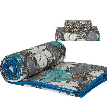 • one printed quilted bedspread: 90" x 89" (229 x 226 cm)