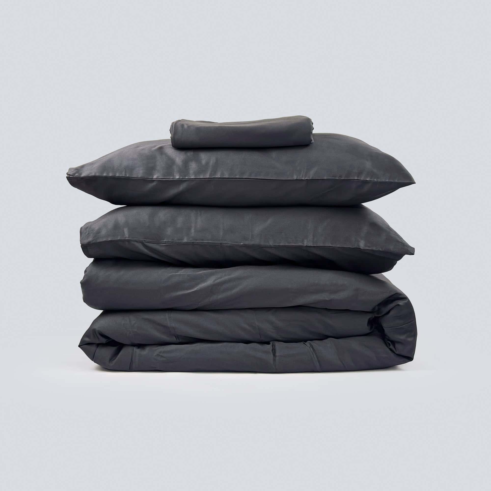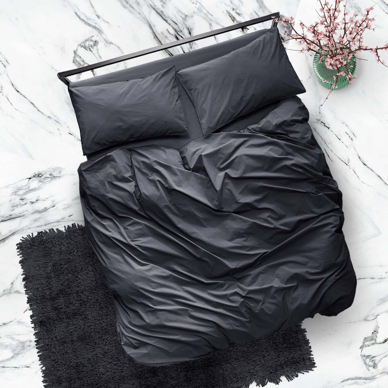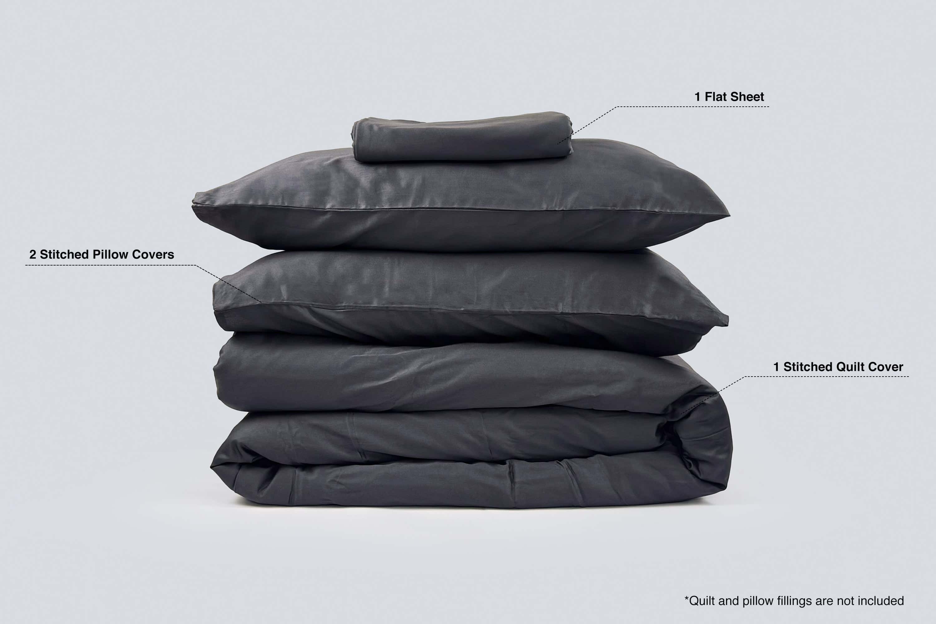 Transform your bedroom with our RHS Dark Grey Solid Color Quilt Cover Set. Crafted from 100% Cotton Satin, it offers a luxurious feel and elegant style. Enjoy ultimate comfort and a serene aesthetic, making it the perfect choice for a restful night's sleep. Elevate your space today.