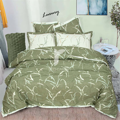 Elevate your bedroom with the RHS Olive Green Abstract Leaf Quilt Cover Set. Crafted from 100% cotton satin, this luxurious set features a stunning abstract leaf design in varying shades of green, creating a serene and sophisticated atmosphere. Transform your sleep space into a sanctuary of style and comfort.