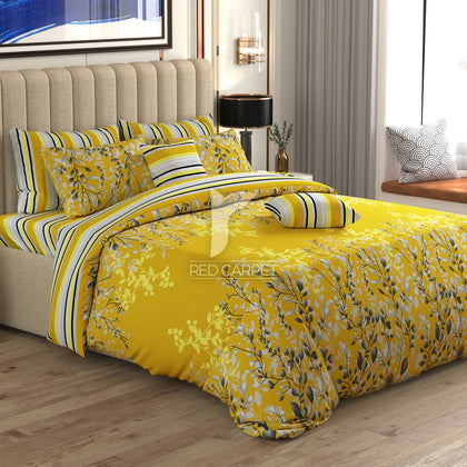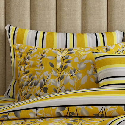 Transform your bedroom with the Yellow Floral Stripes & Geometric Shapes Sateen Quilt Cover Set. This vibrant design combines elegance and modernity, creating a lively atmosphere. Crafted from luxurious sateen fabric, it offers unmatched softness and durability, ensuring a cozy and stylish sleep experience every night.