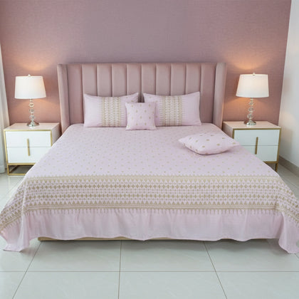 RHS 5 pcs Embroidered Bedsheet Set (Pink)