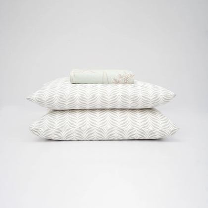 Introduce a breath of fresh air with this luxurious Cotton Satin Bedsheet, featuring a serene Mint Green base and an elegant Botanical Print in soft white. Crafted from premium Cotton Satin, this material is distinguished by its silky-smooth finish and beautiful, fluid drape, providing a luxurious sensation against the skin. While offering the polished look of satin, the cotton weave ensures superior breathability and cooling comfort, preventing overheating.