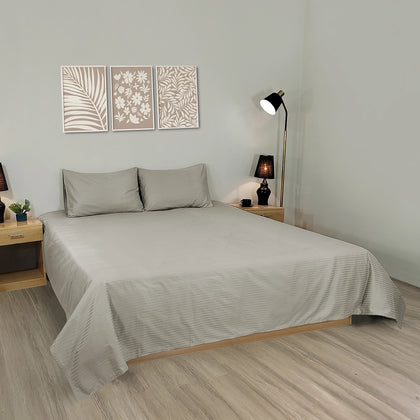Create a serene, sophisticated retreat with this elegant Cotton Satin Stripe Bed Sheet Set in a versatile Grey color. Crafted from high-quality Cotton Satin, the fabric boasts an incredibly smooth, soft, and fine texture.The neutral Gainsboro shade seamlessly blends with any decor, while the woven, integrated satin stripe adds a quiet, dimensional detail. This set is designed for maximum comfort, offering breathability and a beautiful