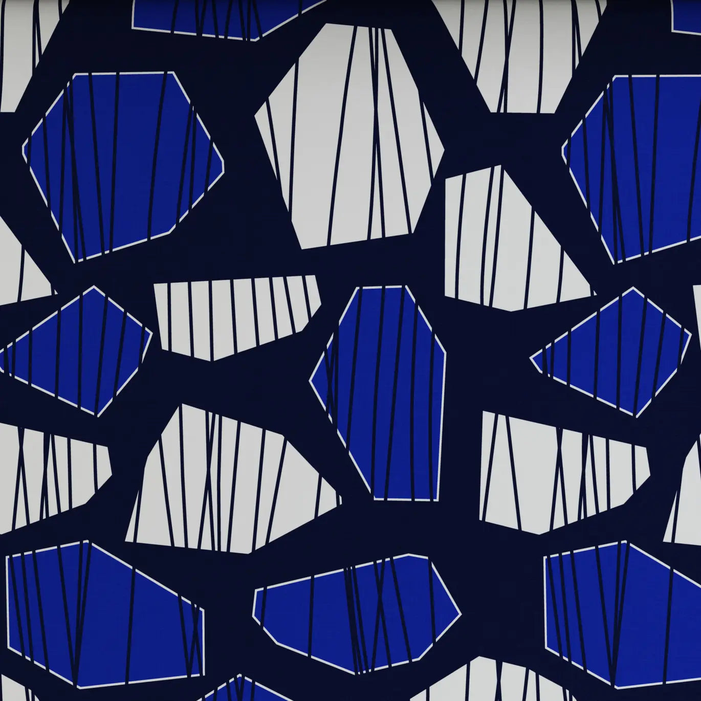 Add a bold touch to your home with the Bold Blue Comforter Set.Crafted from luxurious cotton sateen fabric, it features a deep navy base with striking royal blue and white abstract polygonal shell-inspired design with striped detailing. Designed for all-season comfort, it keeps you cool in summer and warm in winter while adding a bold, contemporary charm to your décor.