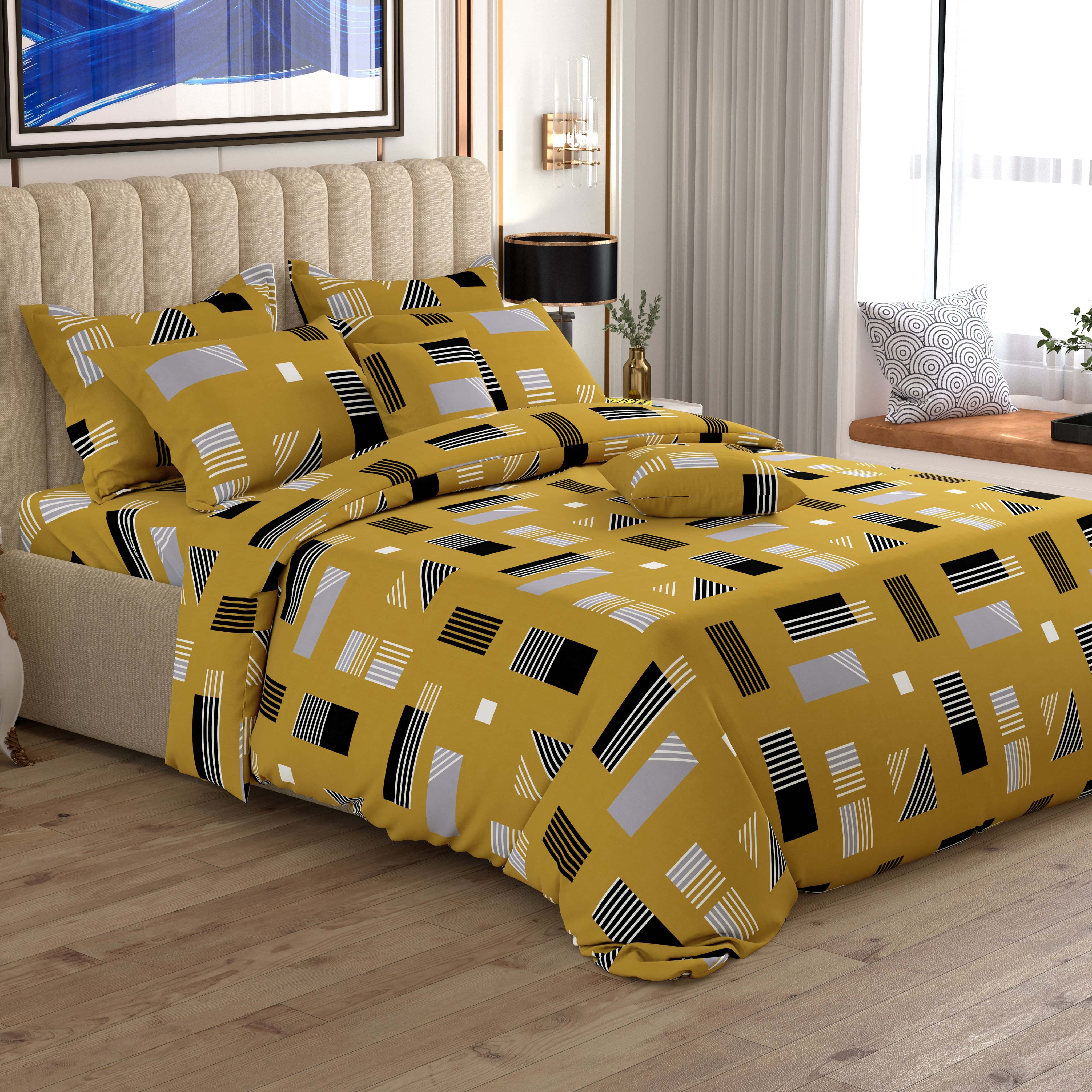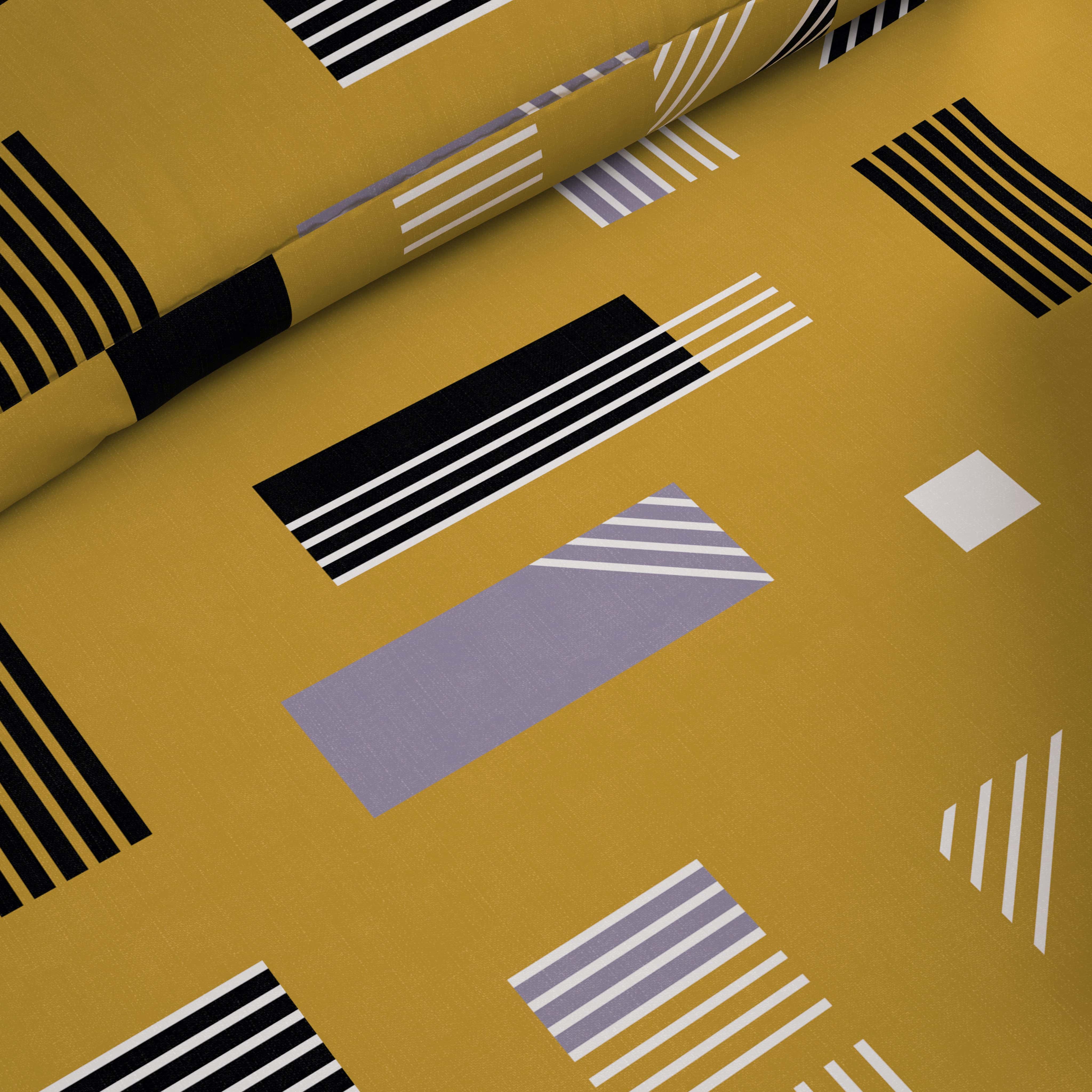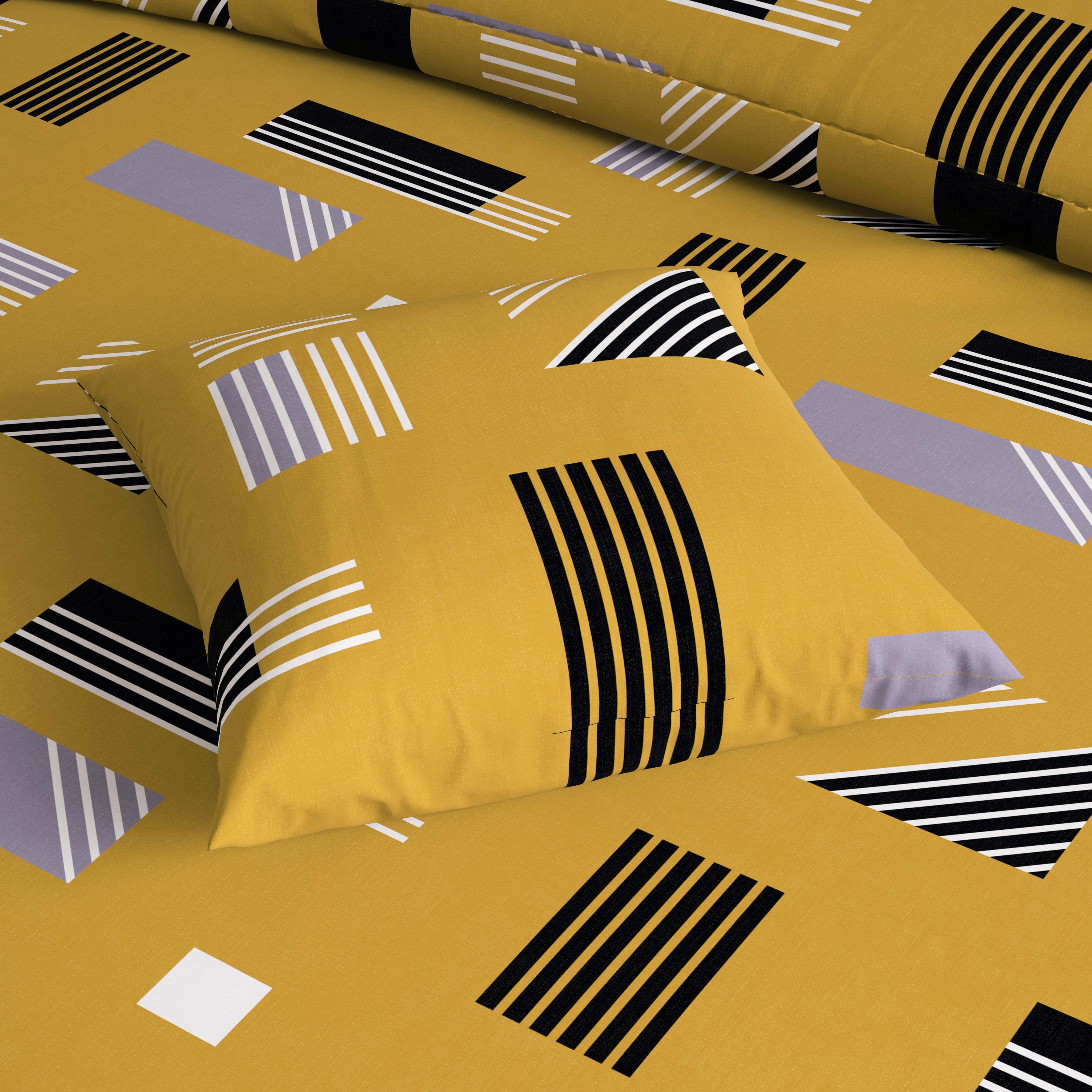 Transform your bedroom with the Mustard Yellow Geometric Patchwork Quilt Cover Set. Crafted from luxurious Sateen fabric, this stunning design features bold rectangles and stripes in a vibrant patchwork style. Experience ultimate comfort and chic sophistication while adding a pop of color to your space. Elevate your sleep sanctuary today.
