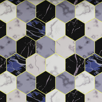 Design: Bold, all-over pattern of interlocking hexagons with a chic marble veining effect.