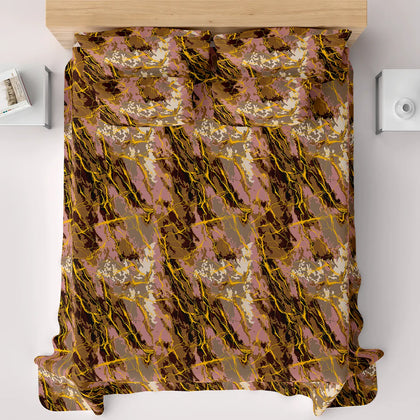 Give your bedroom a rich and stylish look with our Bronze Marble bedsheet set. The unique marble pattern in shades of bronze, gold, and brown adds a warm, elegant touch to your room.Made from soft sateen fabric, this bedsheet feels smooth, comfortable, and durable.The earthy colors and modern marble design make it perfect for both classic and modern home decor styles.