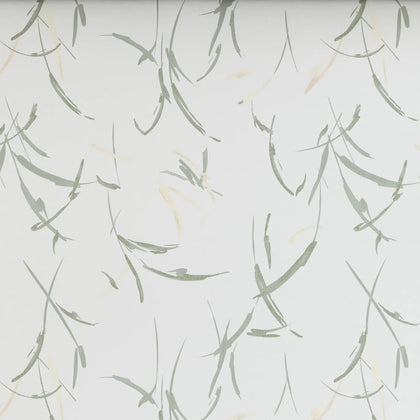 Design: Soft green leaf print on white base