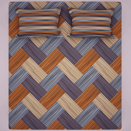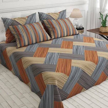 Transform your bedroom with the Brown Geometric Grid Bed Sheet Set. Crafted from luxurious sateen fabric, this set features stylish geometric shapes arranged in a chic grid, complemented by striped pillows for a modern touch. Soft to the touch and elegantly designed, it provides both comfort and sophistication, making it the perfect addition to any decor. Elevate your sleep experience with this stunning bed sheet set that brings style and serenity to your space.