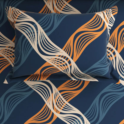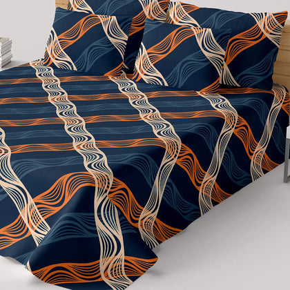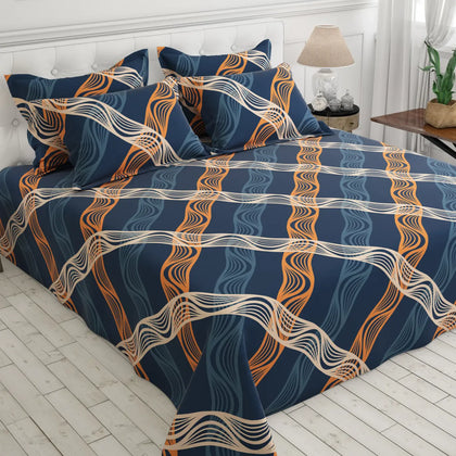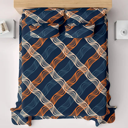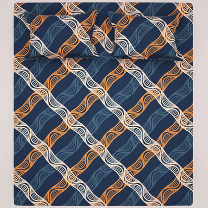 Elevate your bedroom with our Blue Wavy Stripe Sateen Bed Sheet Set - 8313. Crafted from luxurious sateen fabric, this set features stunning blue wavy stripes arranged in a stylish grid pattern, adding a touch of elegance to your space. Experience ultimate comfort and a soft, silky feel against your skin. Transform your sleep environment and indulge in restful nights wrapped in this eye-catching design. Perfect for any decor, don’t miss out on this essential bedding upgrade.