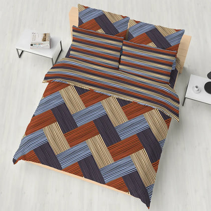 Transform your bedroom with the Sateen Comforter Set 7400. Crafted from luxurious sateen fabric, this set features a soft white base adorned with a vibrant design of blue, orange, and grey. The plush polyester filling (200 GSM) ensures both comfort and warmth for a restful night's sleep.