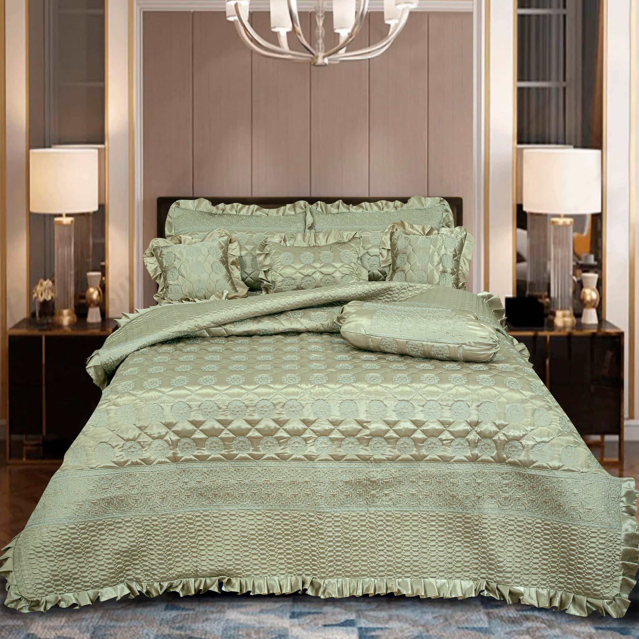- one quilted bedspread: 90" x 90" (7.5 x 7.5 ft) (239 x 239 cm)
