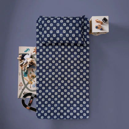 Brighten up any child's bedroom with the adorable Star Bloom Cotton Fitted Bed Sheet Set. Crafted from soft, breathable 100% Cotton, this bedding ensures a comfortable and gentle night's sleep for your little one. The fun, all-over pattern features cheerful white stars (or abstract florals) against a rich navy blue background. Designed specifically as a kids' fitted sheet, it includes elastication on all four sides to guarantee a snug, secure, and hassle-free fit that stays perfectly in place, even with active sleepers. Durable, easy to wash, and wonderfully comfortable, the Star Bloom sheet combines playful design with practical features for parents.