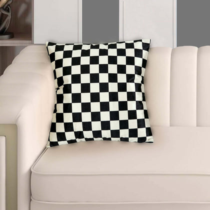 Elevate your living space with our luxurious Velvet Cushion Cover, featuring a stylish white base adorned with a chic black checkered pattern. This elegant accessory combines comfort with a modern aesthetic, perfect for any home decor.