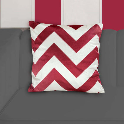 Elevate your home decor with our luxurious Velvet Cushion Cover, featuring a rich maroon base adorned with a chic white zigzag pattern. Perfect for adding a touch of elegance and comfort to any space.