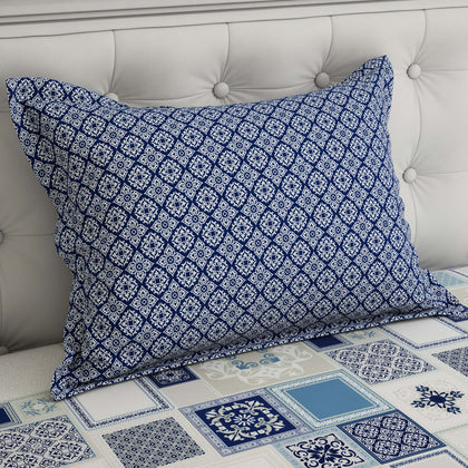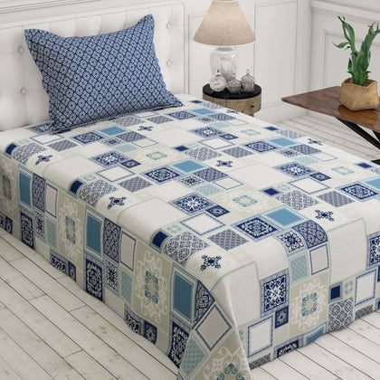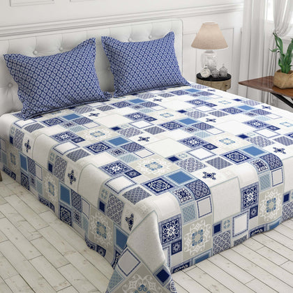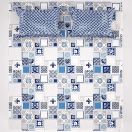 Transform your bedroom with the Xara Sky Blue Geometric Rhombus Floral Bed Sheet Set. Crafted from a premium cotton blended fabric, this set offers ultimate comfort and durability. The stunning geometric rhombus pattern, accented with vibrant floral designs, adds a modern touch to any décor. Experience luxurious softness and breathability while enhancing your space. Elevate your sleep experience with this stylish and sophisticated bed sheet set, perfect for a serene night’s rest.