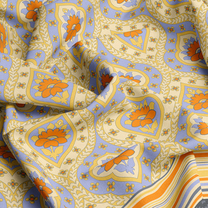 This bedding set features a delightful blend of bright, cheerful colours and diverse geometric patterns, anchored by a bold, dark contrast.The main body of the sheet is dominated by sunny yellow is accented by light grey-blue detailing in the main pattern.. A strong contrast is introduced at the foot of the bed with a deep charcoal grey. Made From Luxurious Cotton Blended Fabric.