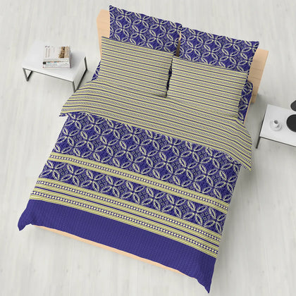 Geometric Blue is a modern blend of style and comfort. Featuring a bold blue base accented with clean beige stripes, this design creates a striking geometric look that elevates any bedroom. Crafted from a soft cotton-blended fabric, it offers breathable comfort and lasting durability..