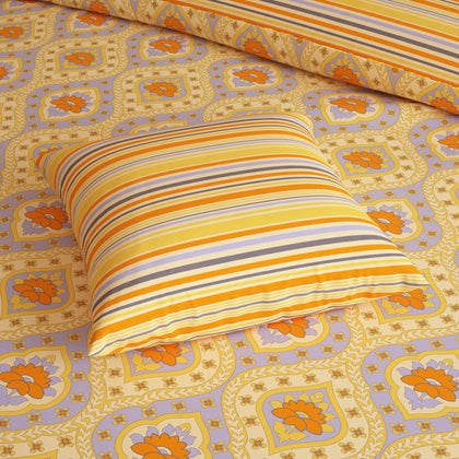 Brighten your space with the cheerful energy of the Sunny Grid Set 8-Piece King Reversible Quilt Cover. This charming ensemble features a delightful interplay of soft, sunny yellow and neutral light grey, patterned with a repeating geometric "grid" or honeycomb motif. The design is elegantly framed by bold, coordinating yellow and white stripes on the borders and shams, adding a touch of tailored structure.Crafted from a premium, breathable cotton-blended fabric, this set ensures lasting softness, durability, and year-round comfort. The complete collection offers a sophisticated, layered look right out of the package, including the reversible quilt, a fitted sheet, two pillow shams, two pillowcases, and two decorative cushion covers. Transform your master suite into a light-filled, inviting haven with the delightful appeal of the Sunny Grid Set.