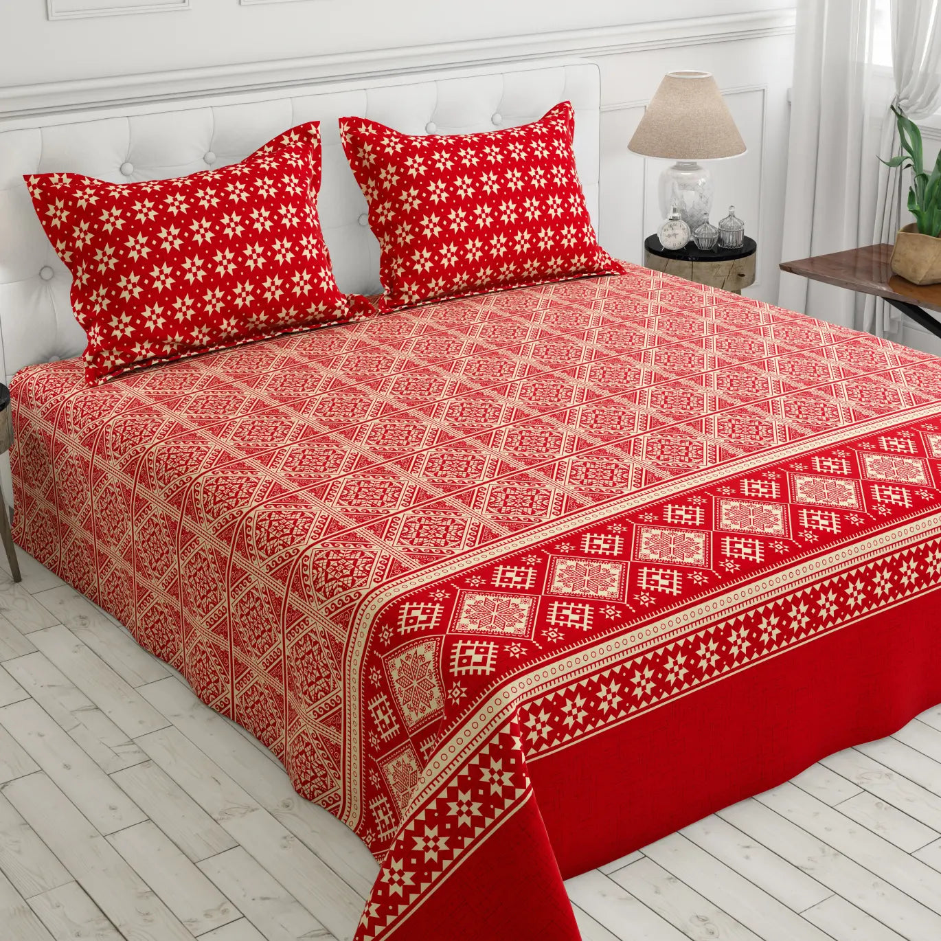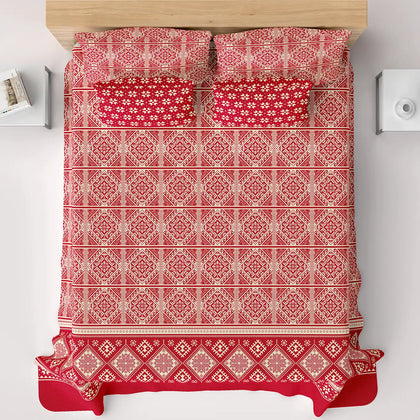 Transform your bedroom with the Xara Red Geometric Bed Sheet Set. Crafted from soft, durable cotton blended fabric, this vibrant set features a striking geometric design that adds a modern touch to any space. Experience ultimate comfort and breathability while enjoying the bold red hues that will invigorate your decor. Easy to care for and fade-resistant, this bed sheet set is the perfect choice for style and practicality. Elevate your sleep experience today.