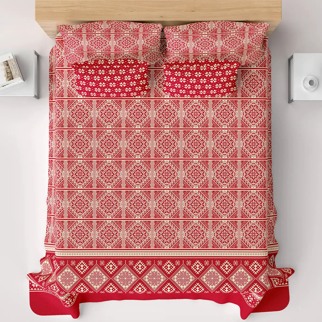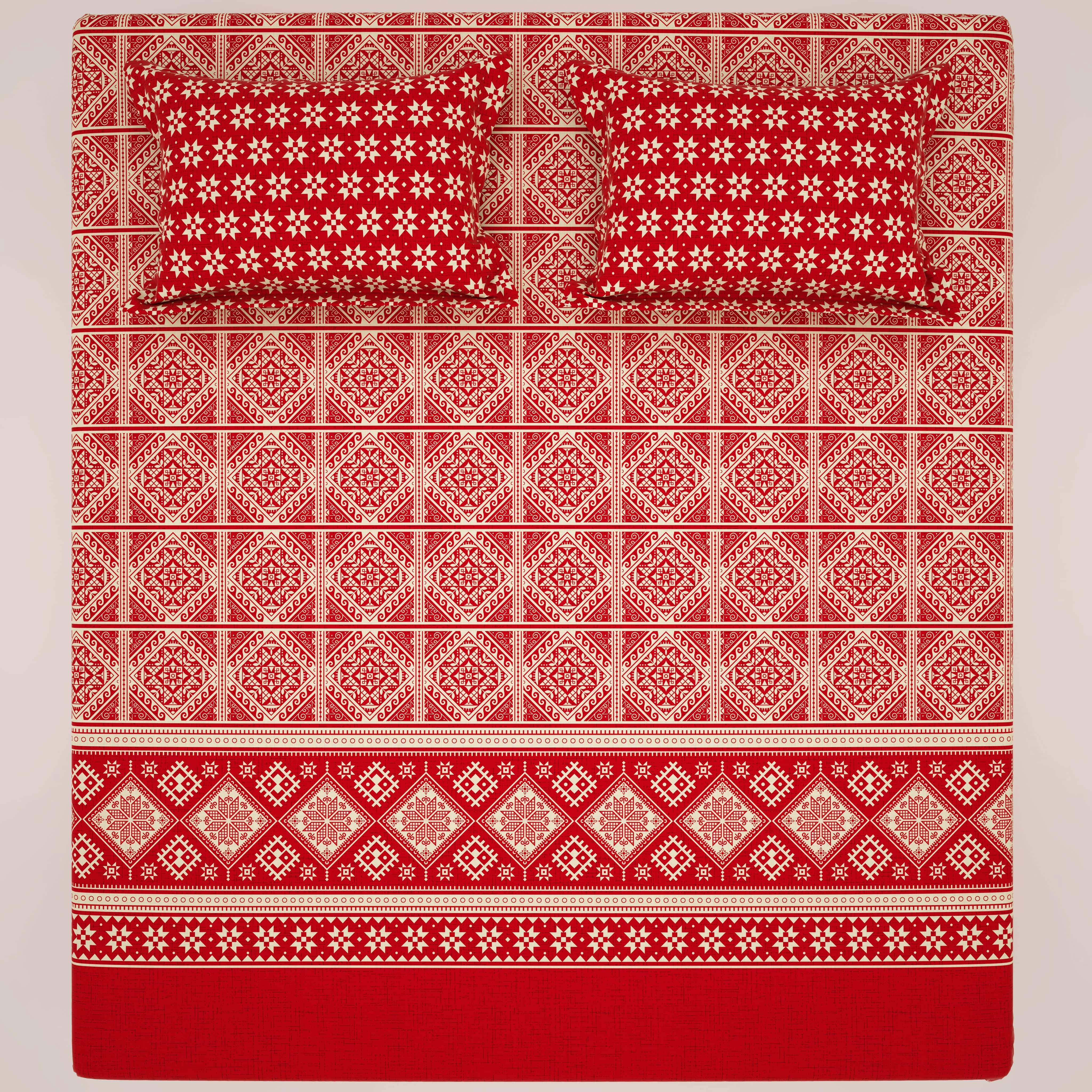 Xara Red Geometric Bed Sheet Set - 8585-8586