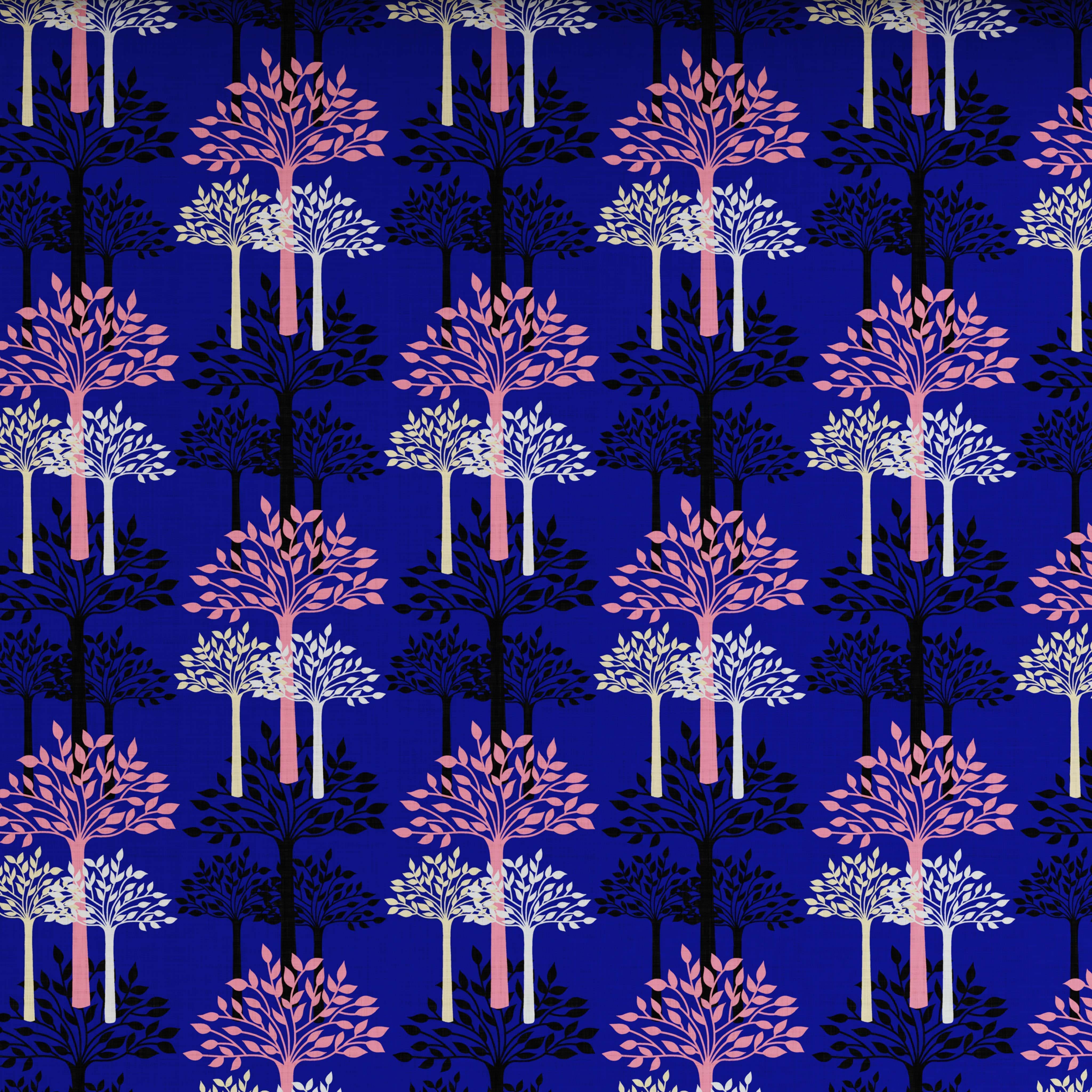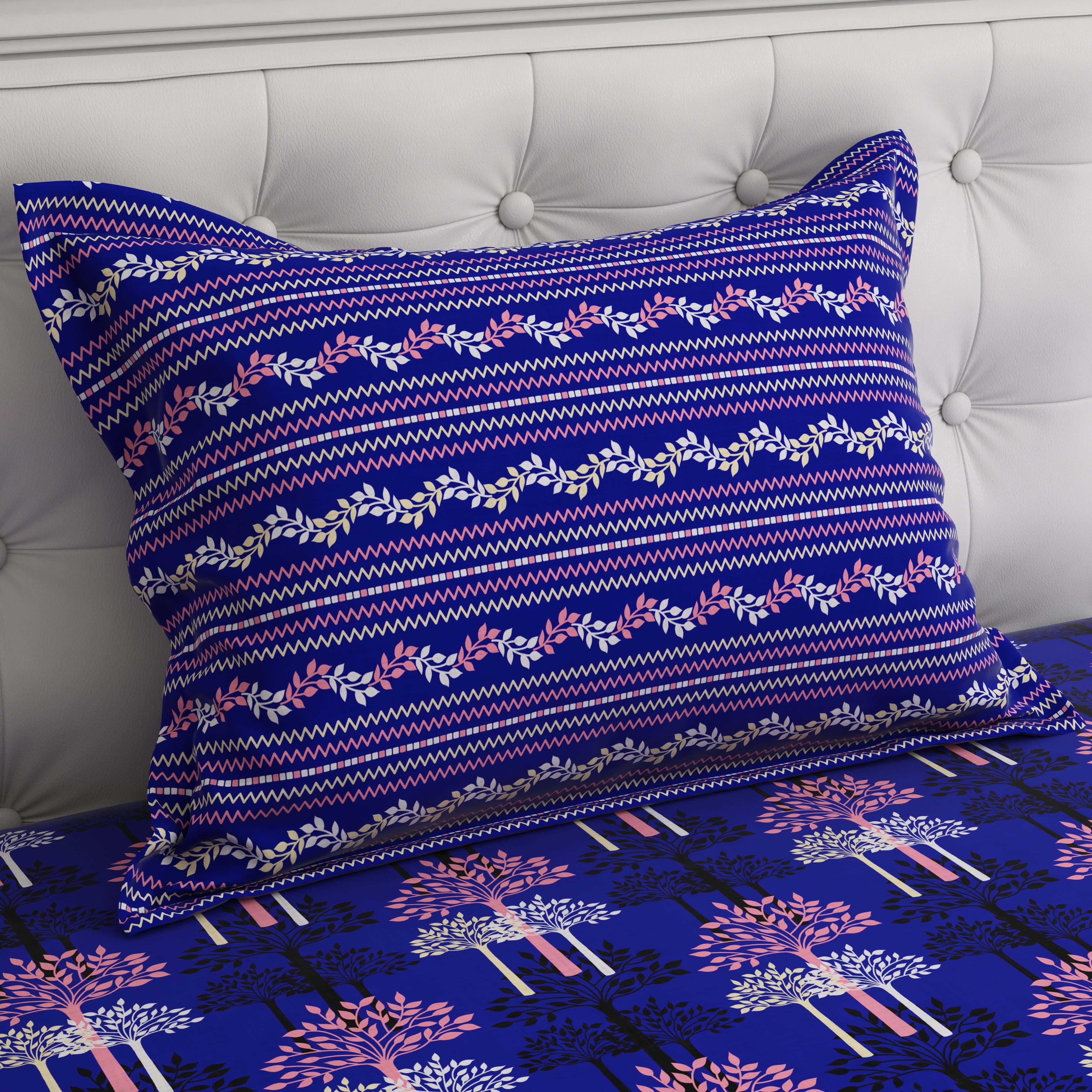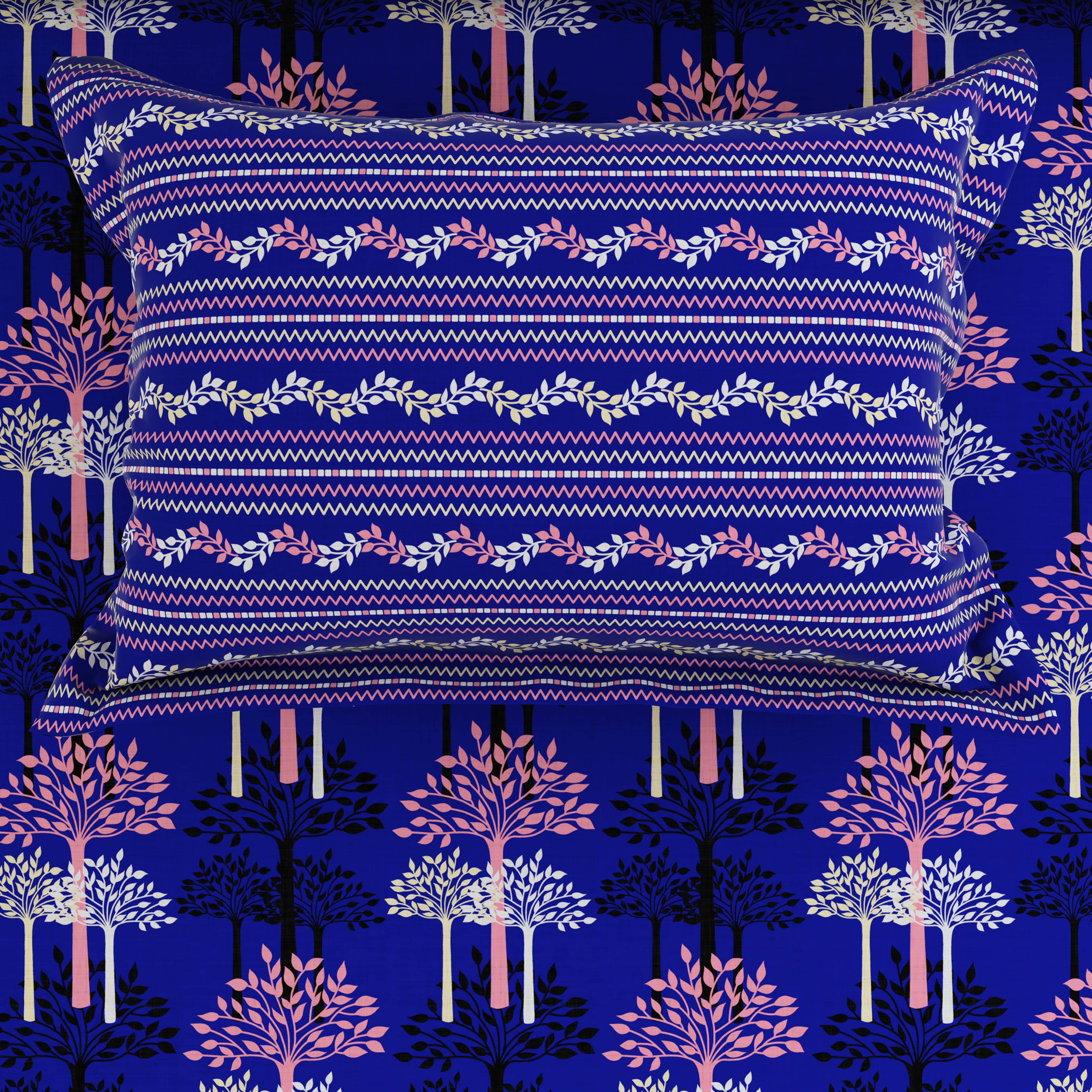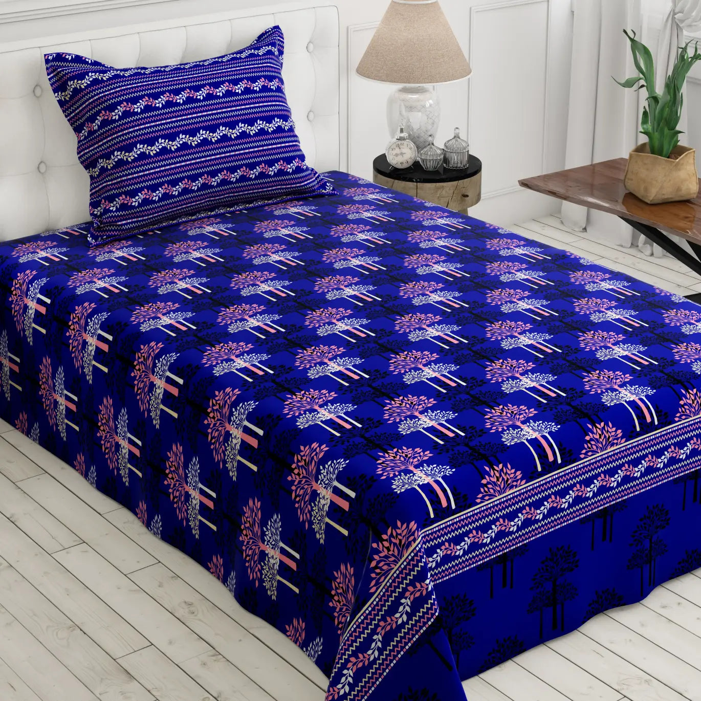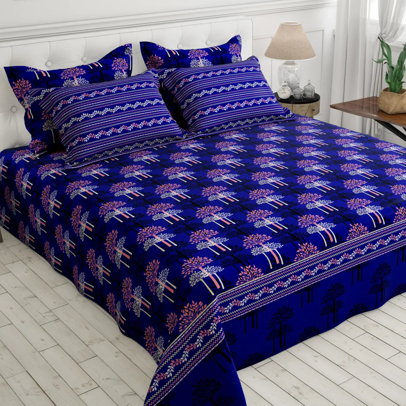 Xara Royal Blue Tree Motif/Grid Pattern Bed Sheet Set - 8679-8680