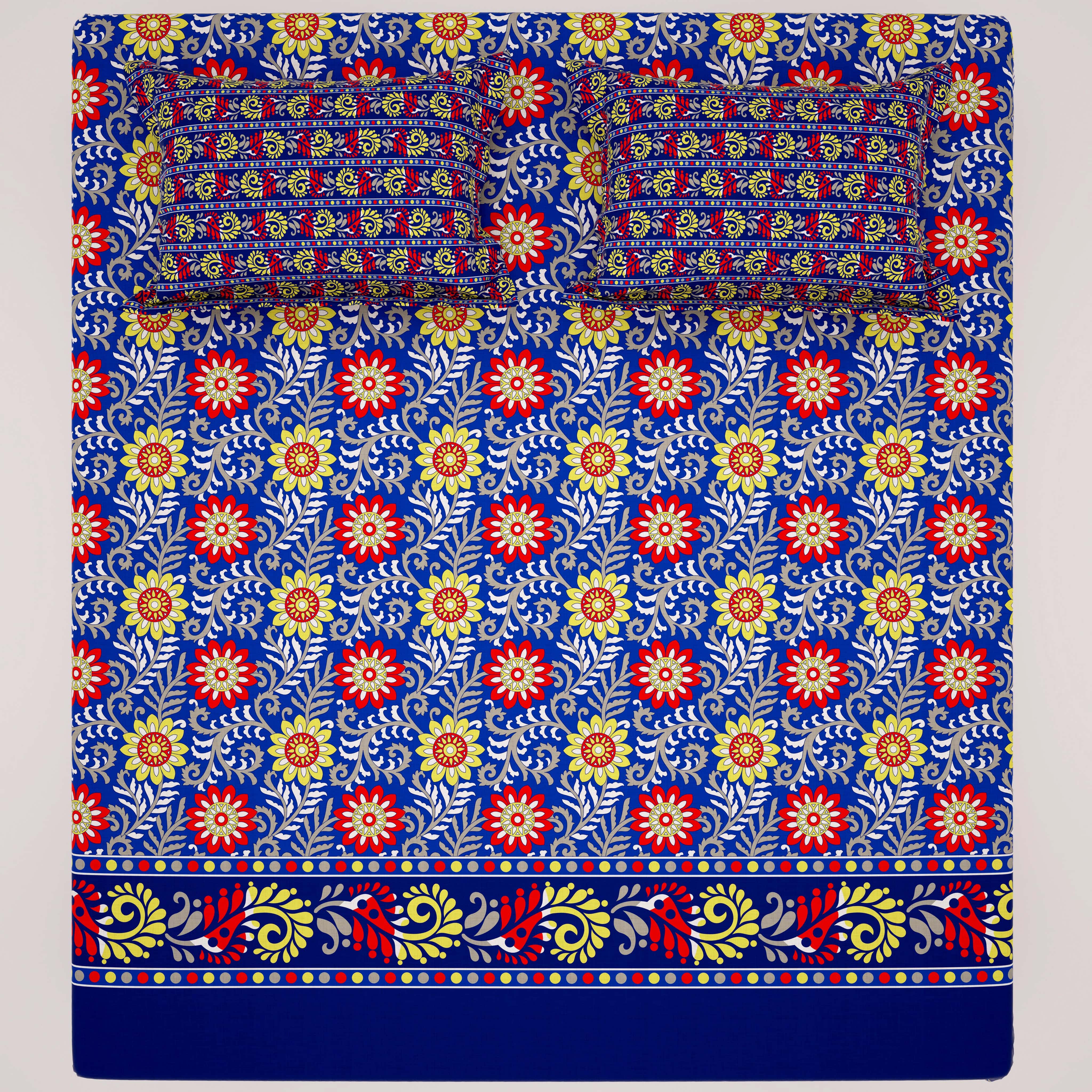 Xara Royal Blue Floral Bed Sheet Set - Xara 8699-8700