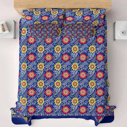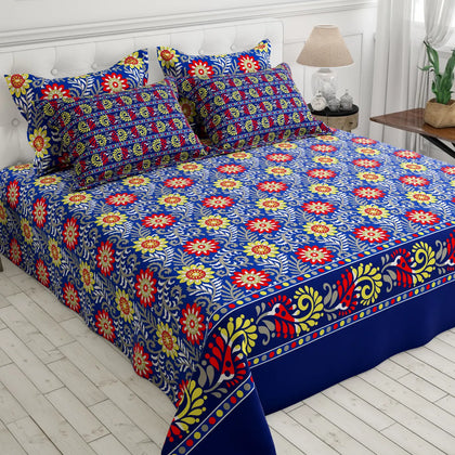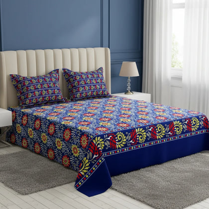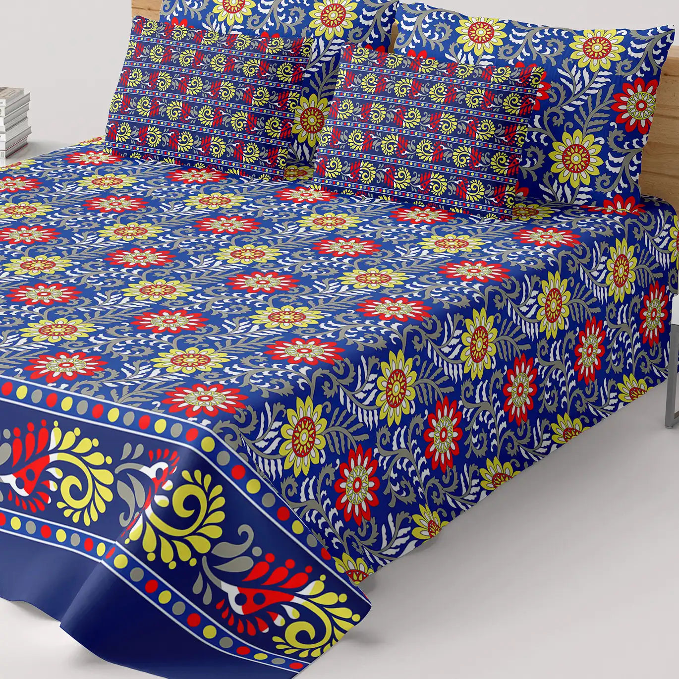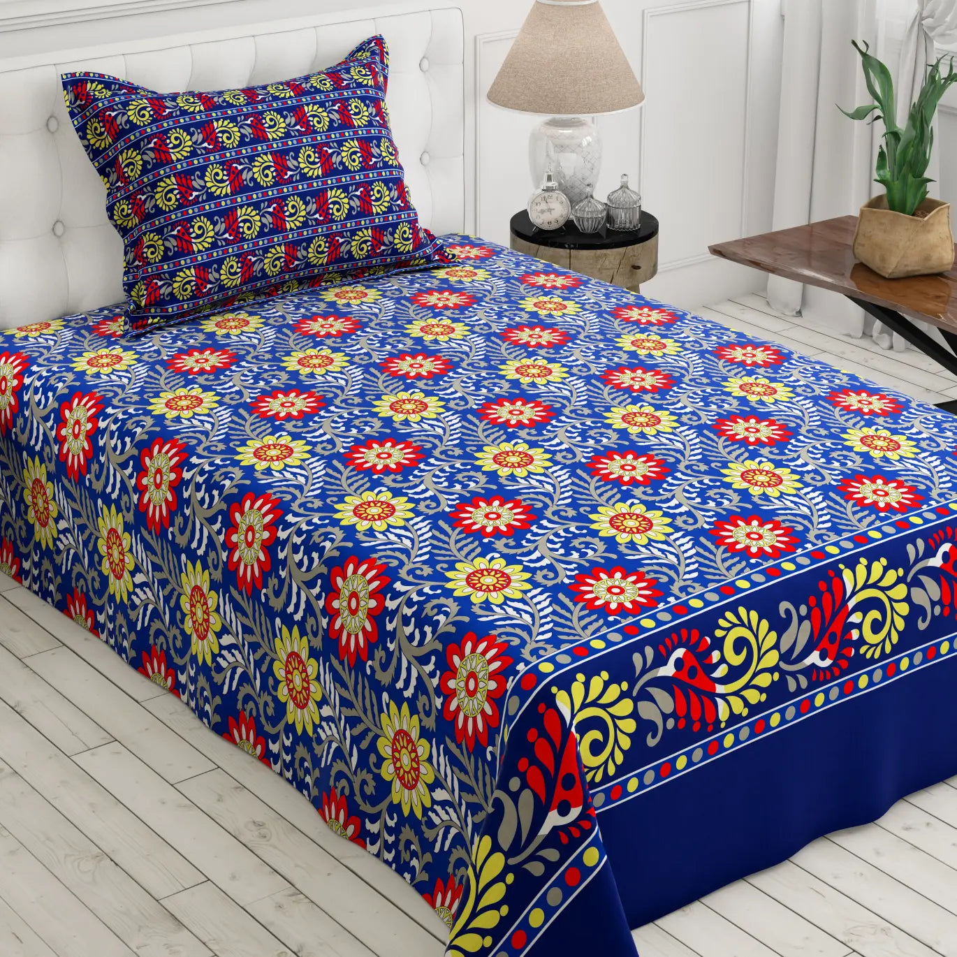 Transform your bedroom into a serene oasis with the Xara Royal Blue Floral Bed Sheet Set. Crafted from premium cotton blended fabric, this set combines softness and durability for a perfect night's sleep. The vibrant royal blue floral design adds a touch of elegance and style to your decor, making it ideal for any bedroom. Experience comfort and charm with every sleep and elevate your space effortlessly with the Xara 8699-8700 bed sheet set.