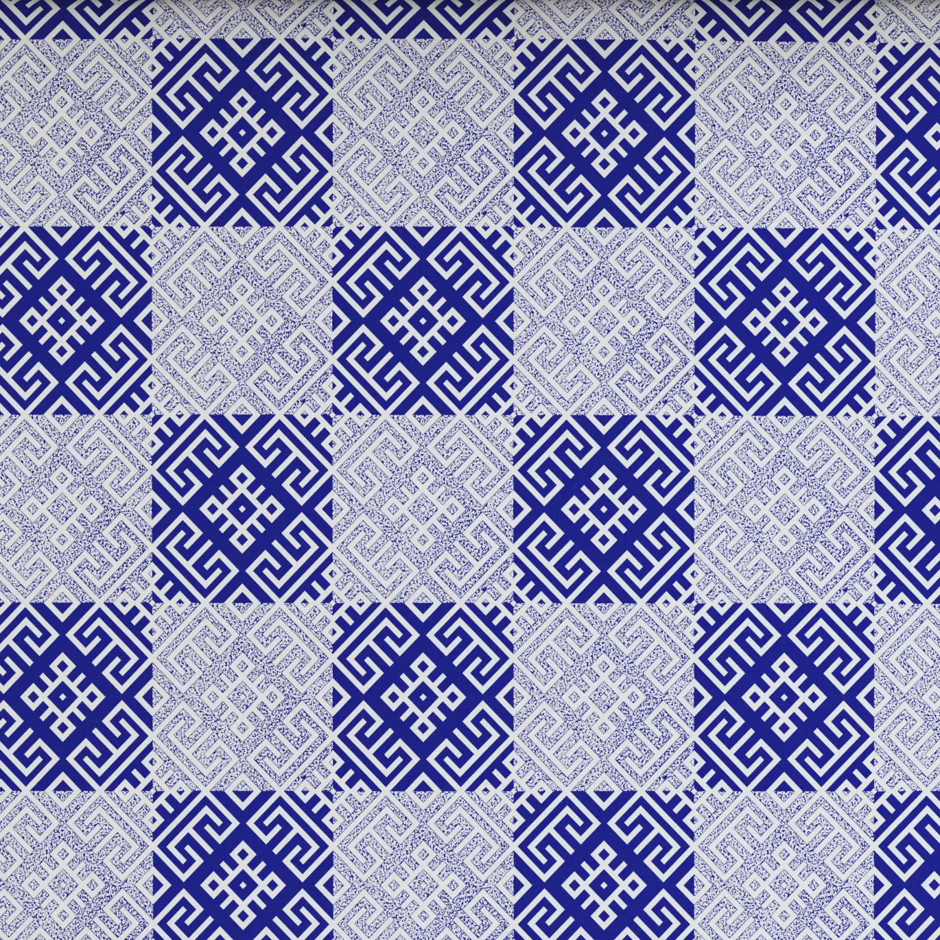 Pattern: Geometric Mosaic with a traditional, Block-Print style