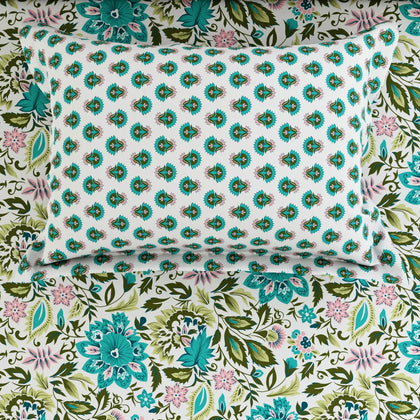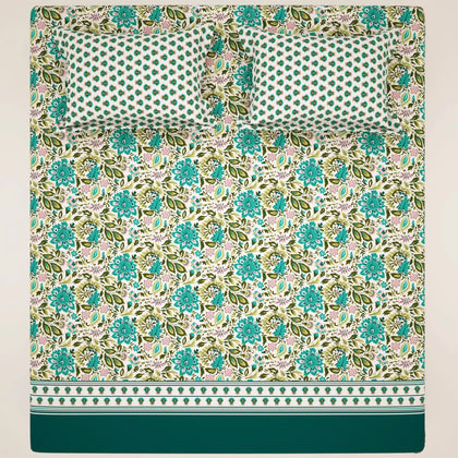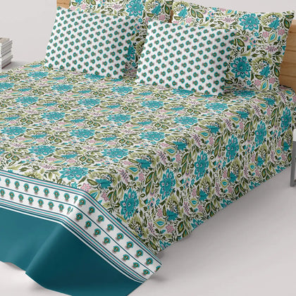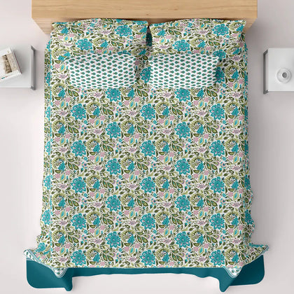 Refresh your bedroom with the tranquil charm of the Sea Flora Bed Sheet Set. Crafted from a premium cotton-blended fabric, this bedsheet combines the softness and breathability of cotton.Inspired by nature’s coastal hues, the blue and green floral pattern brings a soothing, oceanic elegance to your space. Whether for daily use or special occasions, this bedsheet adds a perfect balance of style, durability, and serenity to your bedroom décor.
