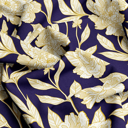 Colour: Deep midnight blue base paired with golden-beige floral patterns