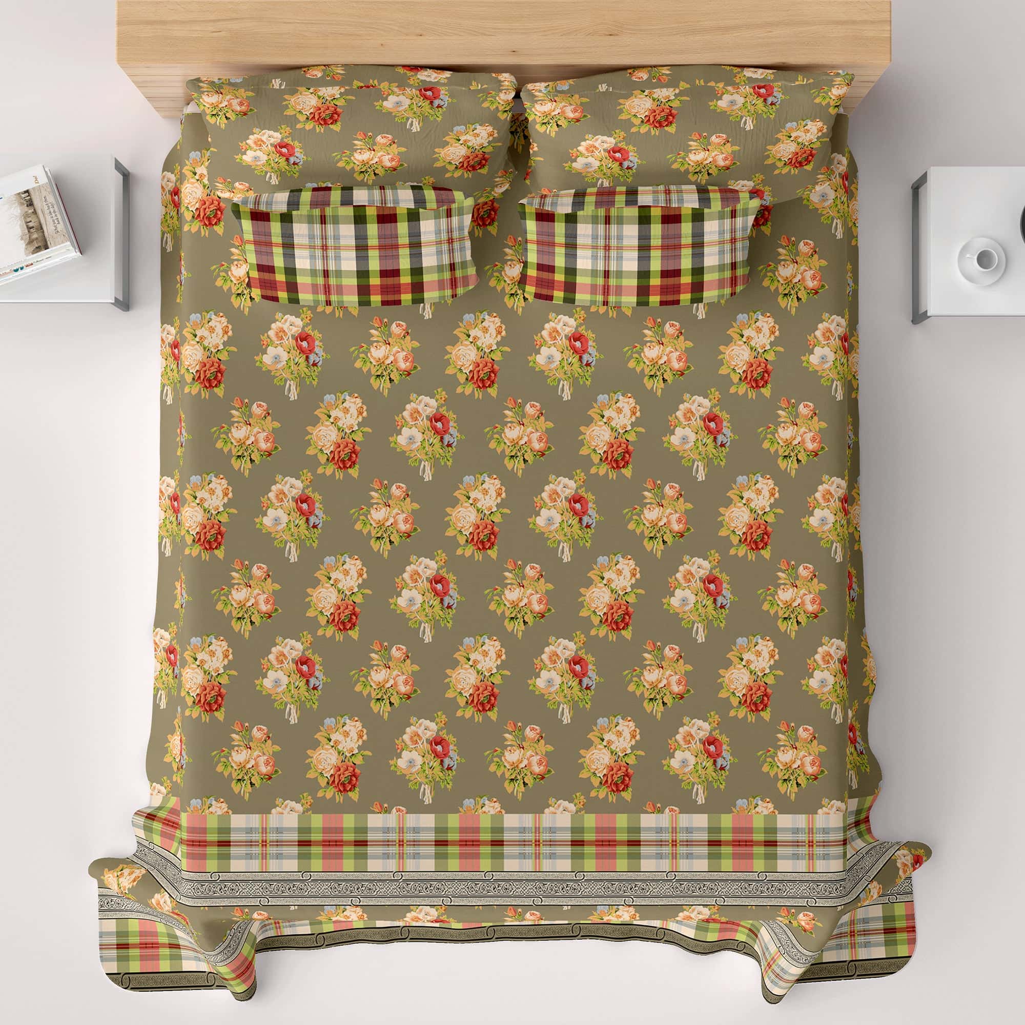 Xara Brown Floral Bed Sheet Set - 6944-6945