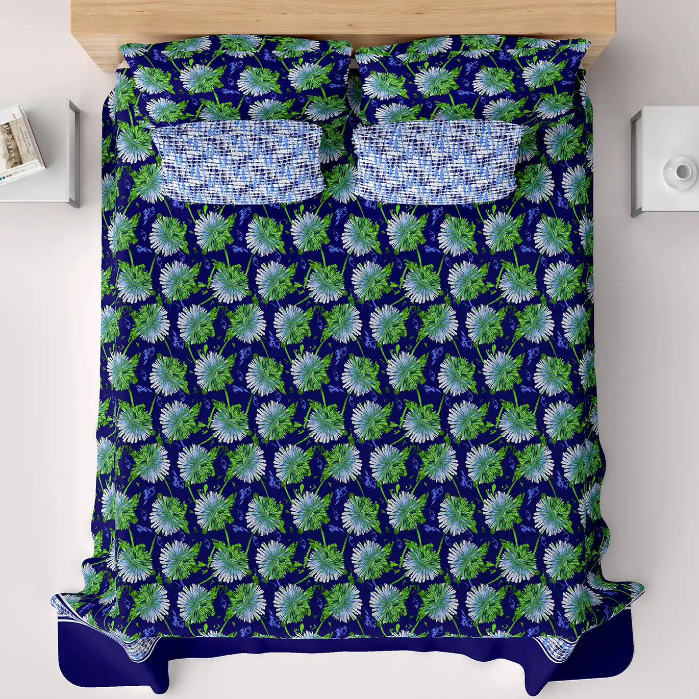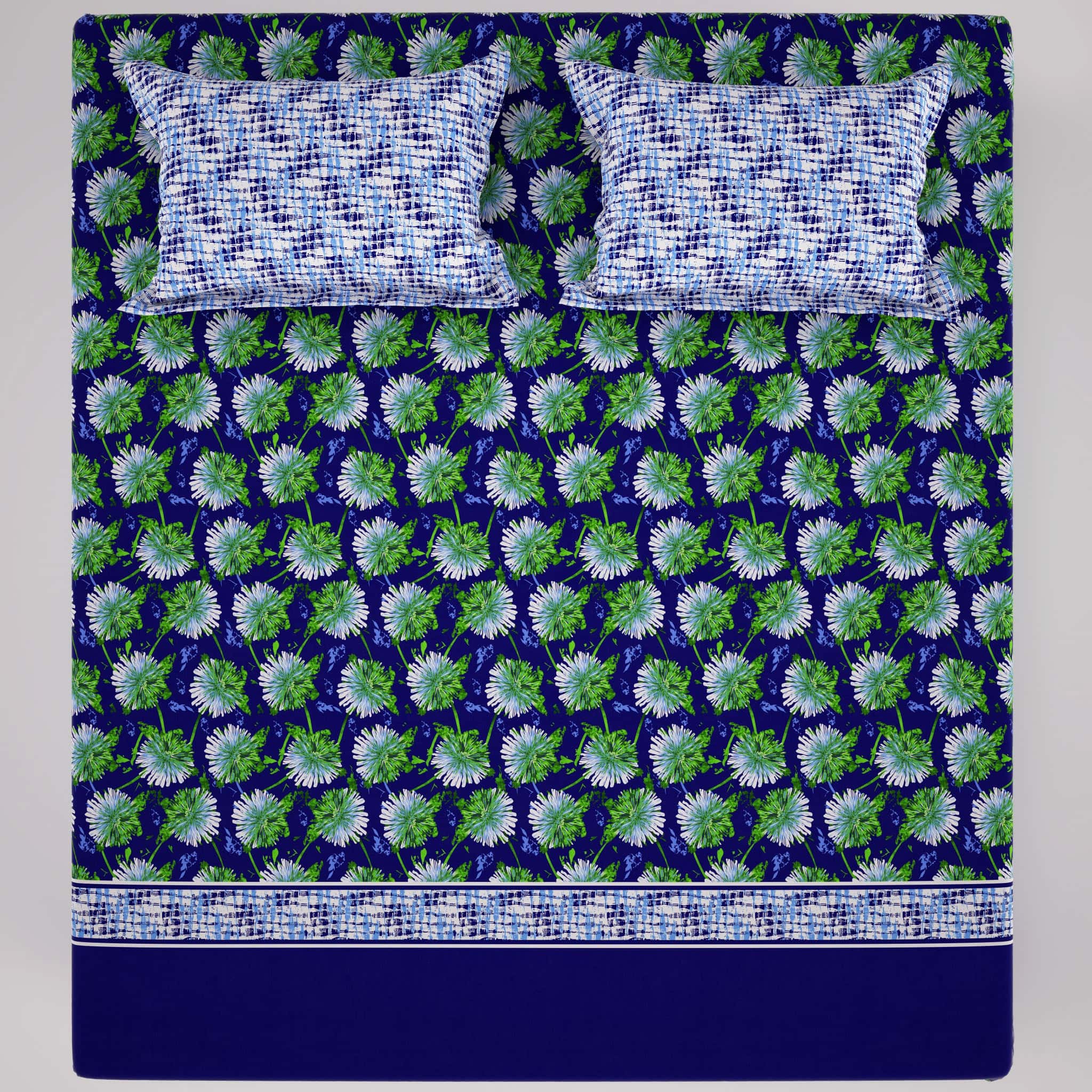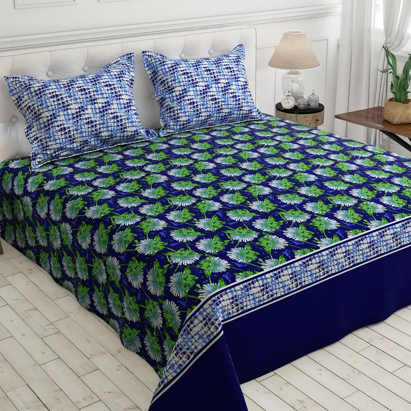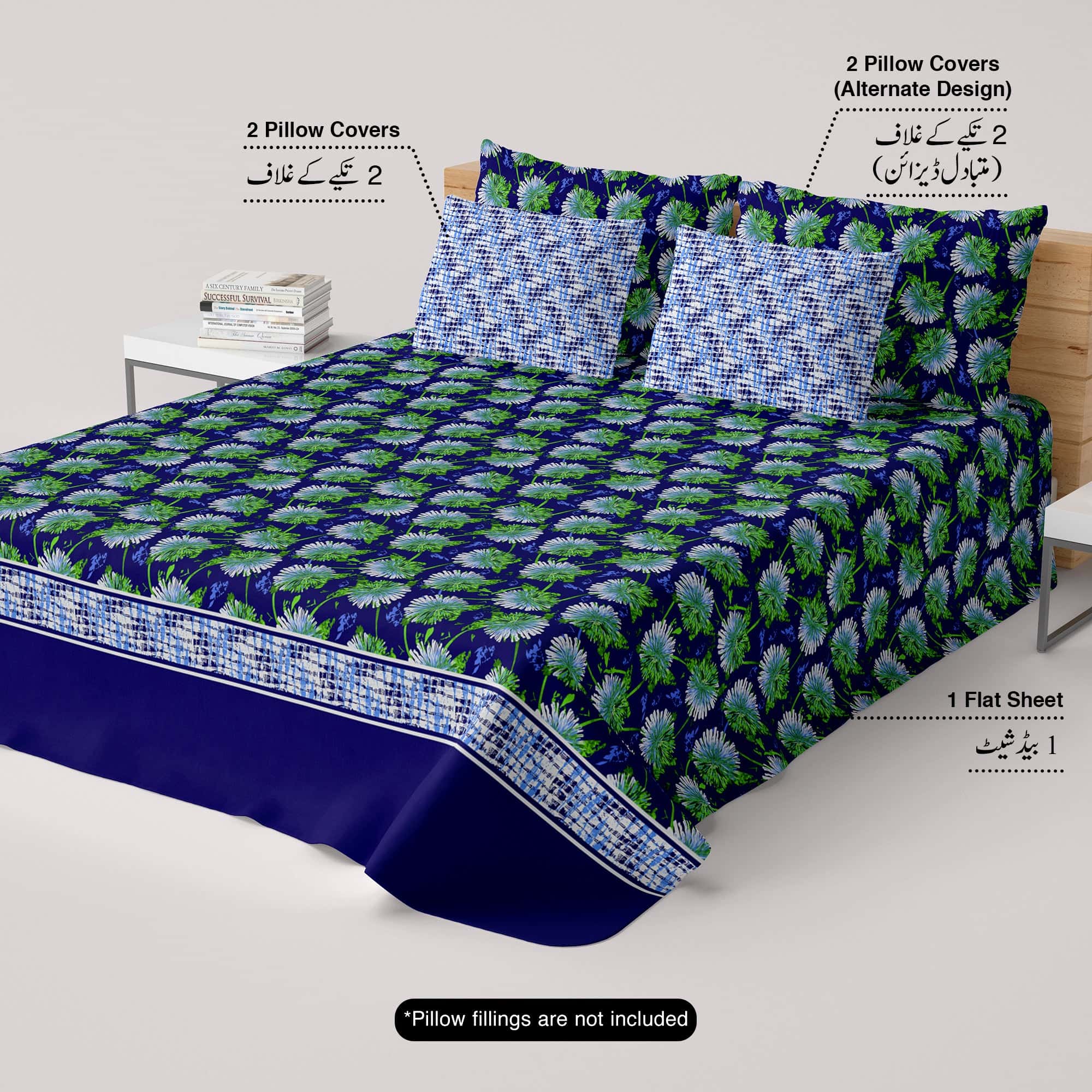 Xara Blue Floral Geometric Border Bed Sheet Set - 7643-7644