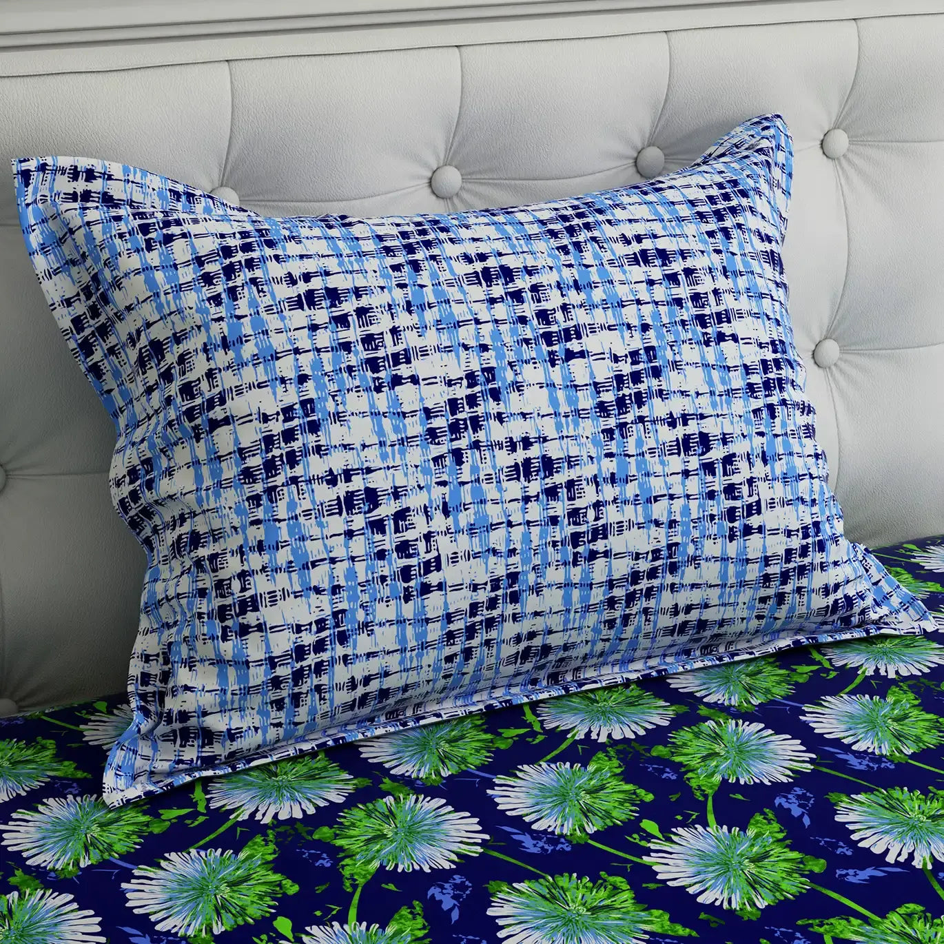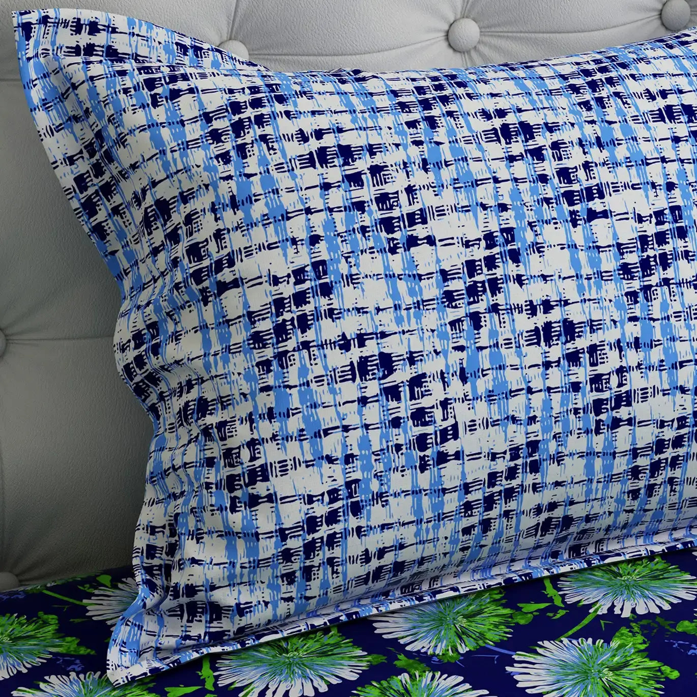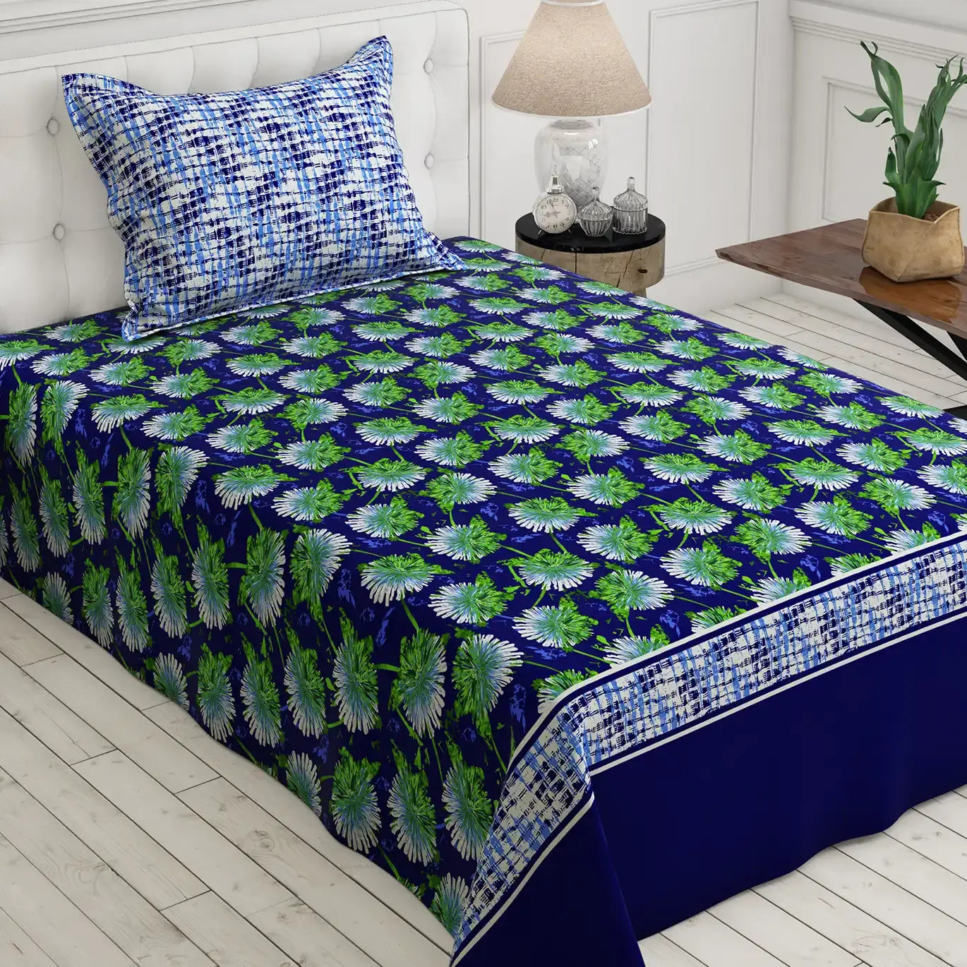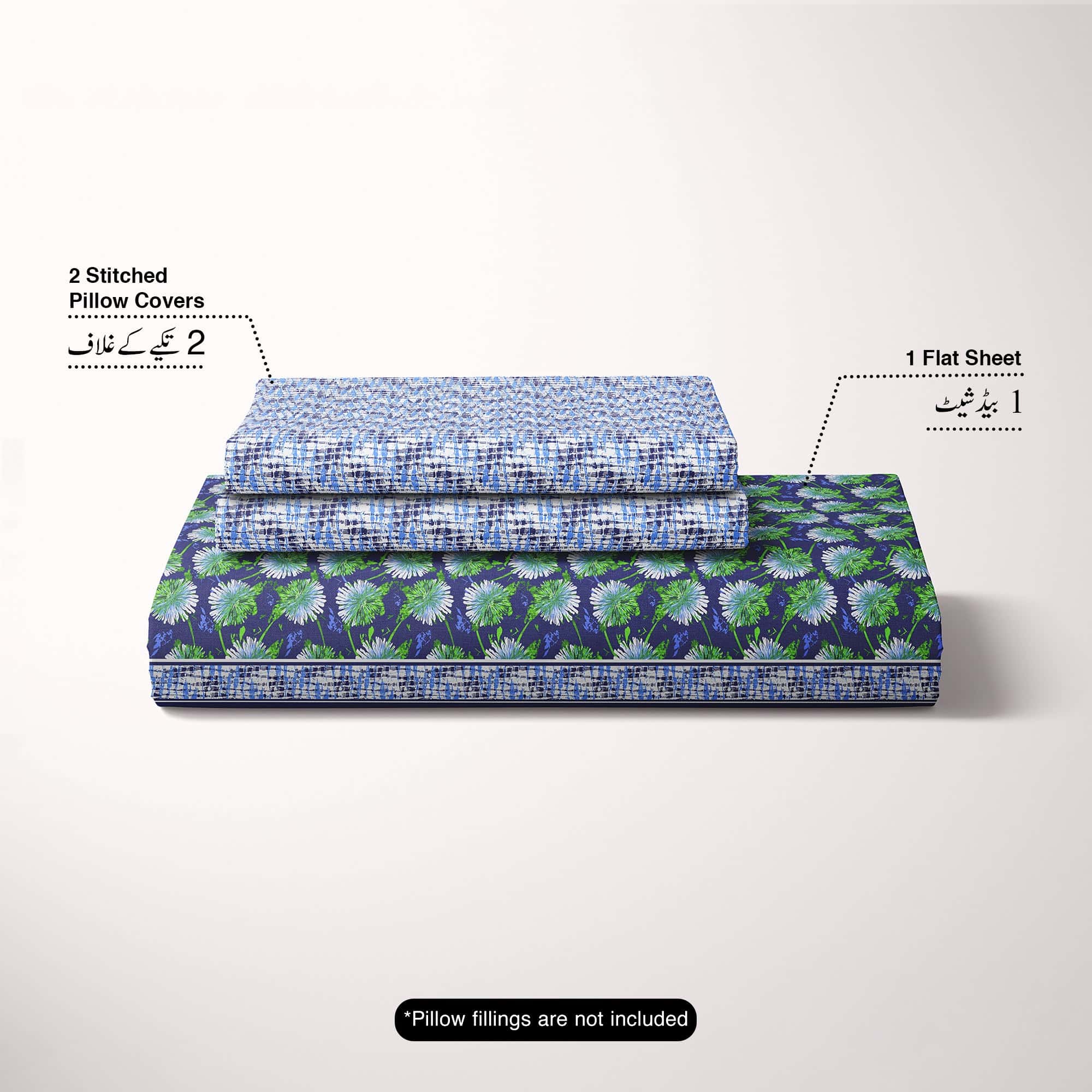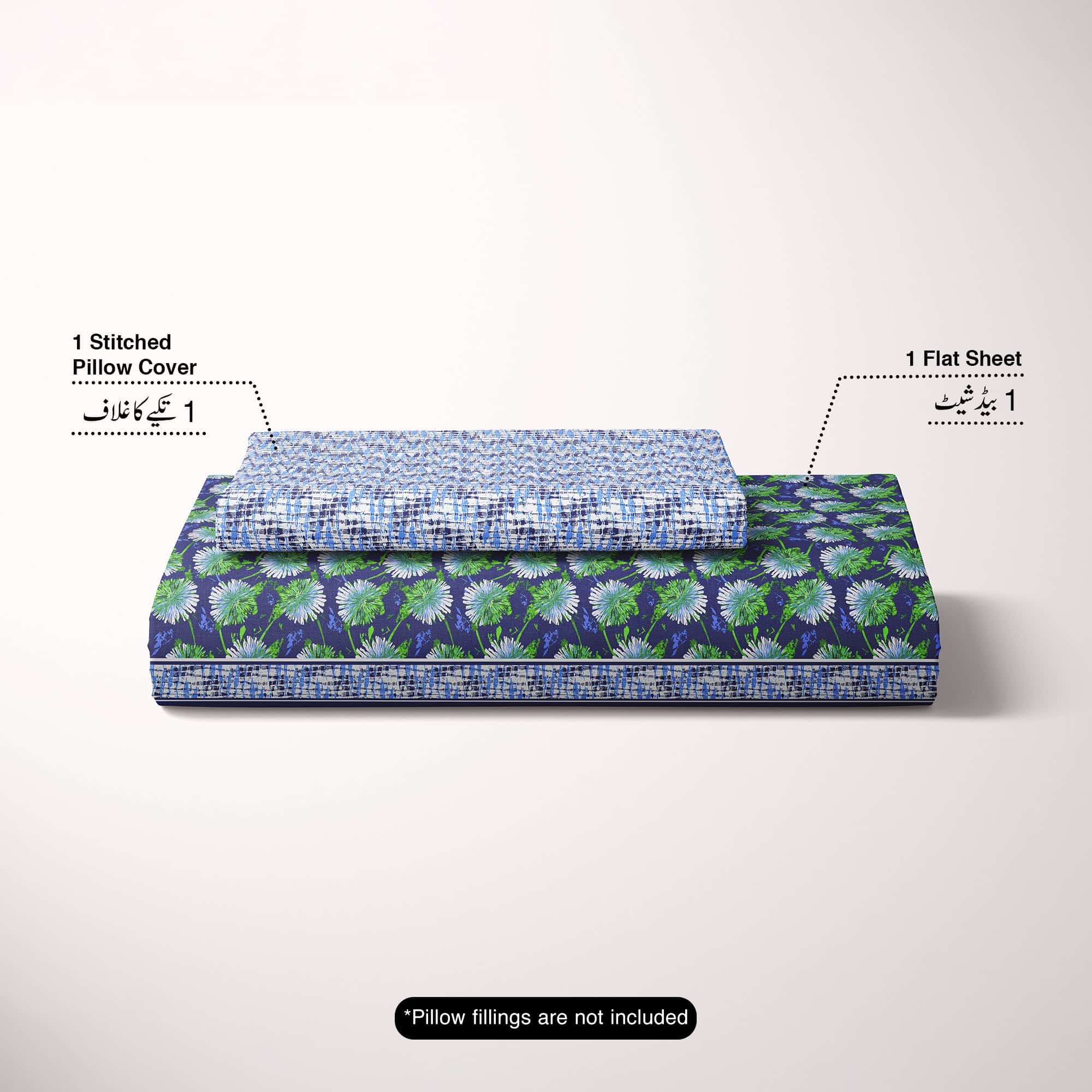 Xara Blue Floral Geometric Border Bed Sheet Set - 7643-7644
