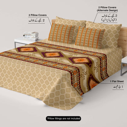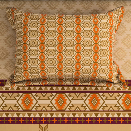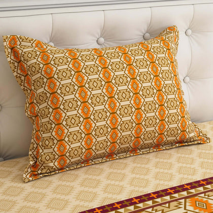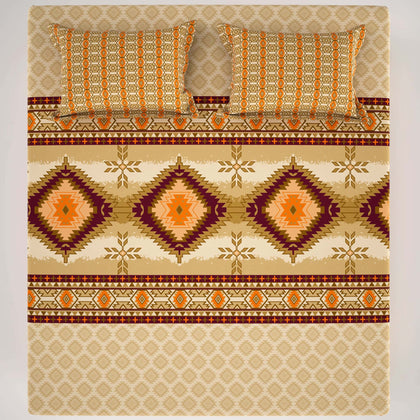 Transform your bedroom with the Xara Beige Geometric Grid Bed Sheet Set. This stylish set features a modern grid design and coordinating striped pillows, all crafted from soft, durable cotton blended fabric for ultimate comfort. The elegant beige tones seamlessly blend with any décor, making it perfect for a cozy retreat. Elevate your sleep experience and add a touch of sophistication to your space with this exquisite bed sheet set.