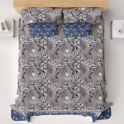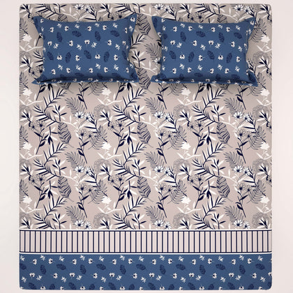 Transform your bedroom into a serene sanctuary with the Xara Floral Stripes Bed Sheet Set in Grey Blue. Crafted from a premium cotton blended fabric, this set offers breathable comfort and durability. The elegant floral and stripes design adds a touch of sophistication, effortlessly enhancing any decor. Experience cozy nights and stylish aesthetics with this must-have bedding essential, perfect for those seeking both comfort and contemporary flair. Upgrade your sleep space today.