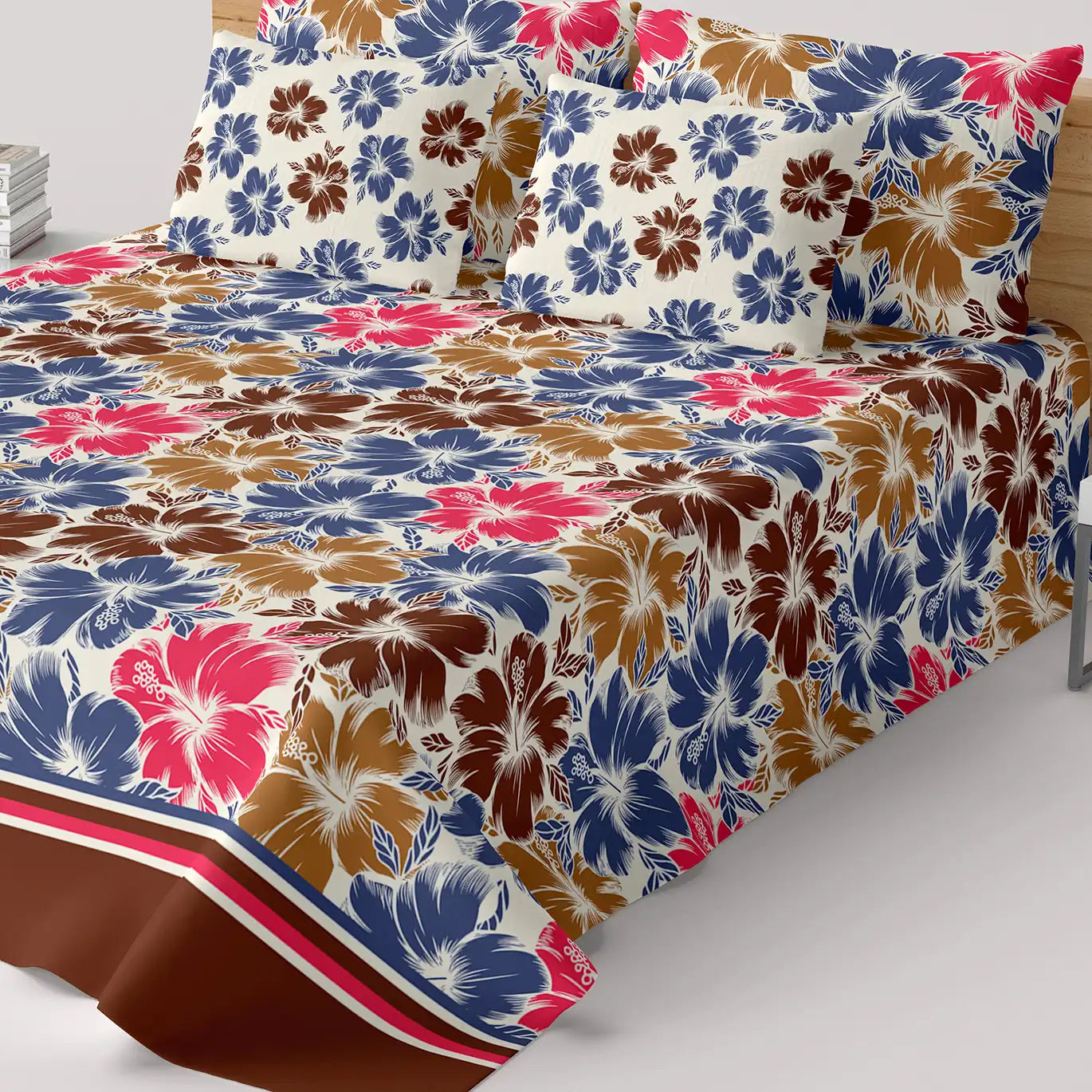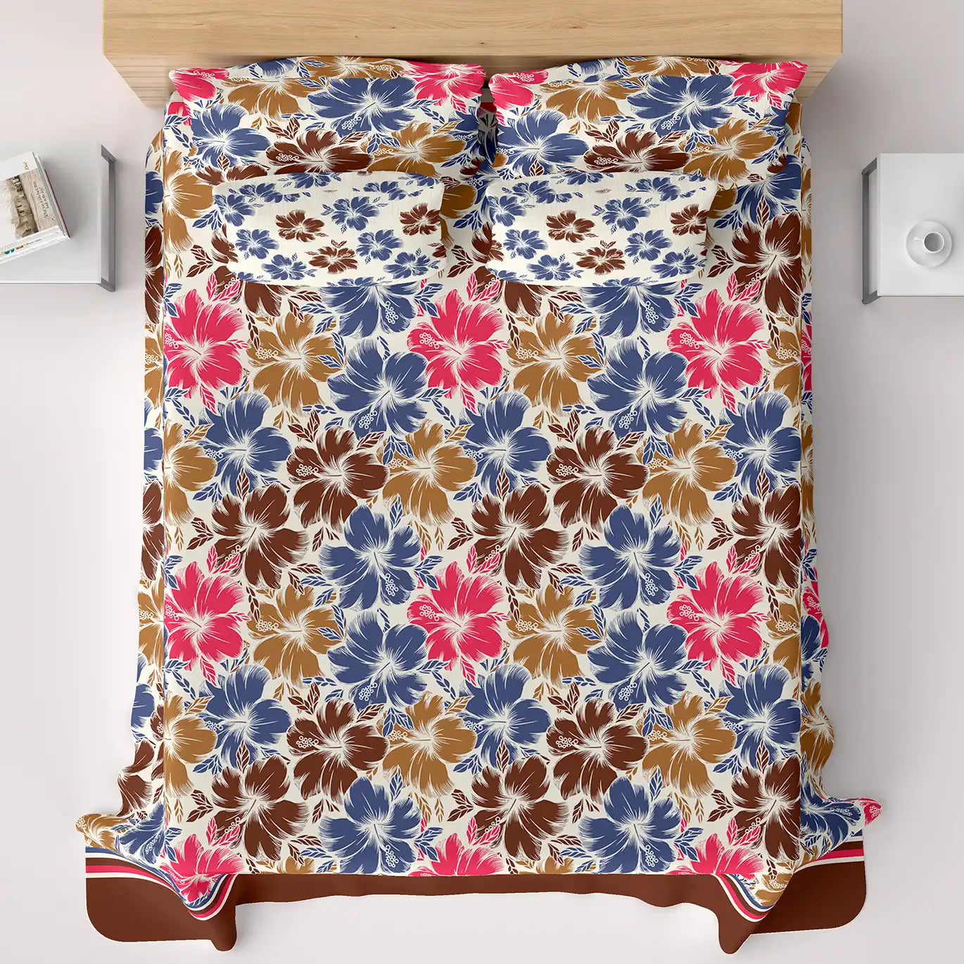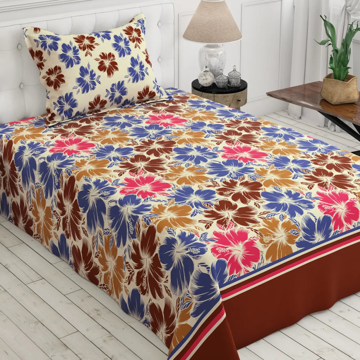 Xara Light Fawn Floral Bed Sheet Set - 8213-8214