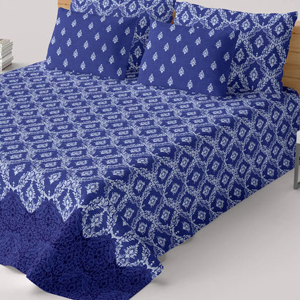 Transform your bedroom with the Xara Blue Geometric Grid Bed Sheet Set. Crafted from premium poly cotton fabric, this set offers exceptional softness and durability for a restful night's sleep. The captivating blue geometric design adds a modern touch, effortlessly enhancing your home decor. Elevate your sleep experience with sheets that combine style and comfort. Perfect for any season, the Xara set is a must-have for those who value both elegance and relaxation.