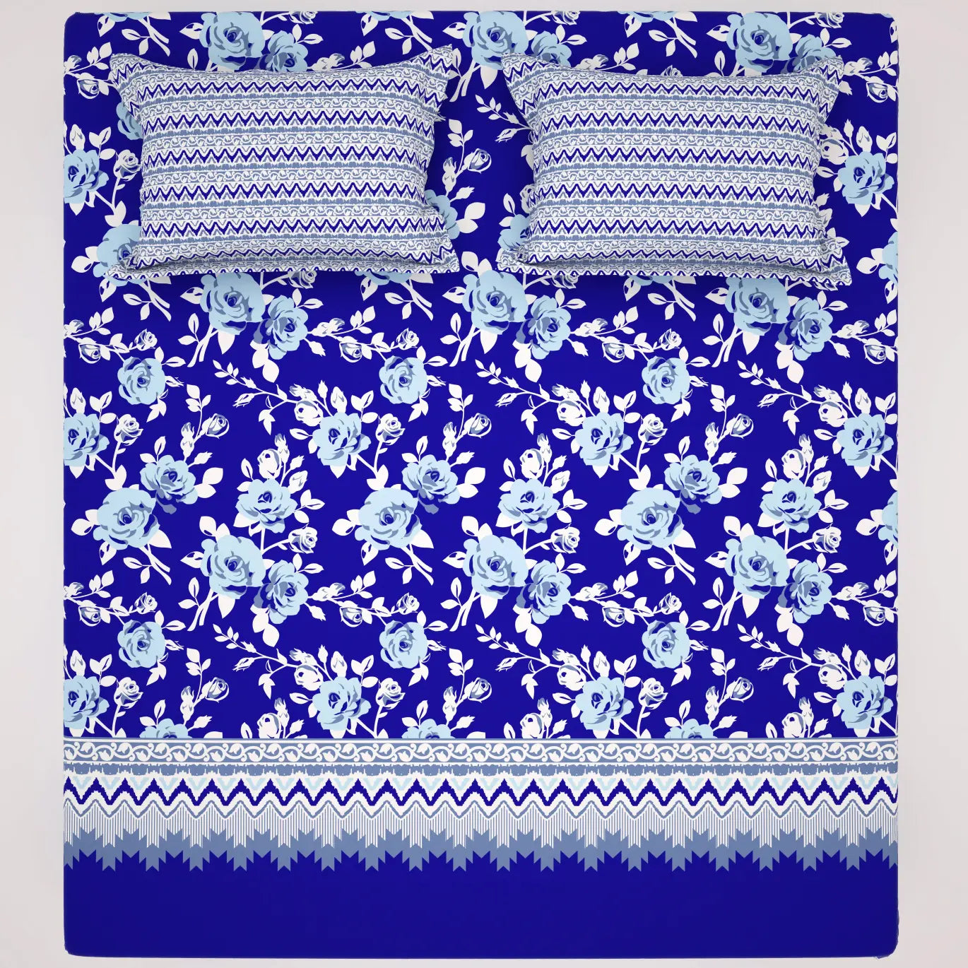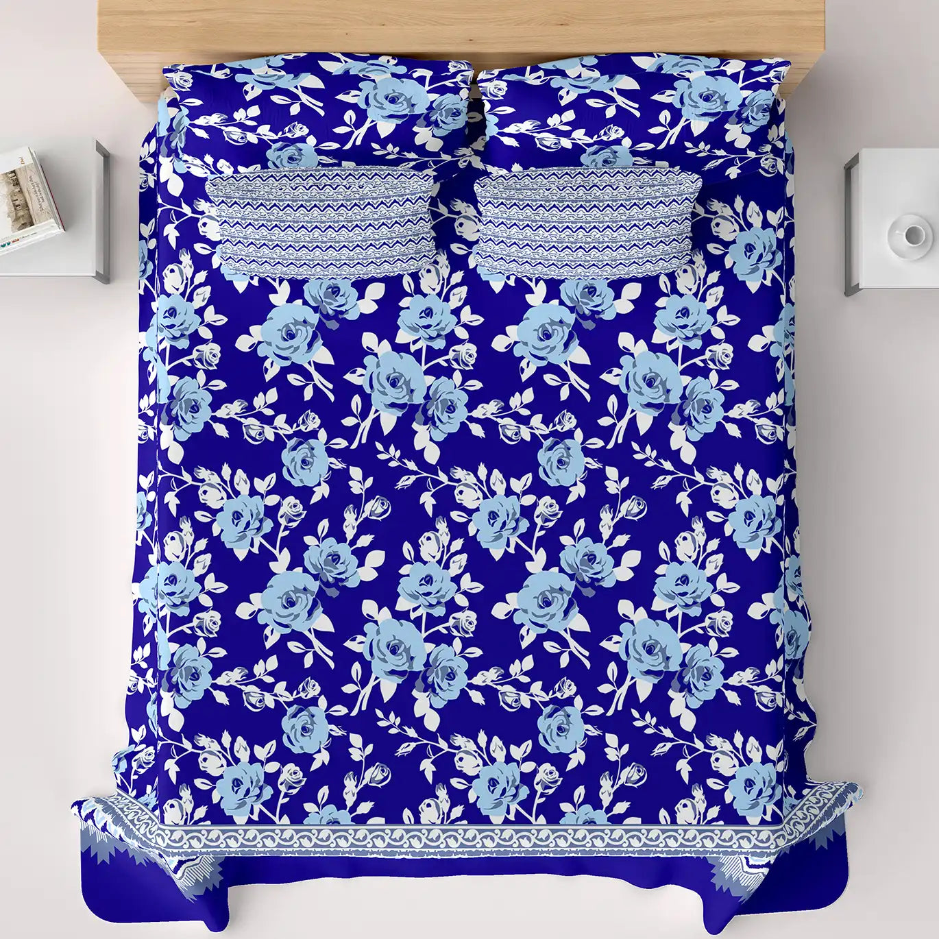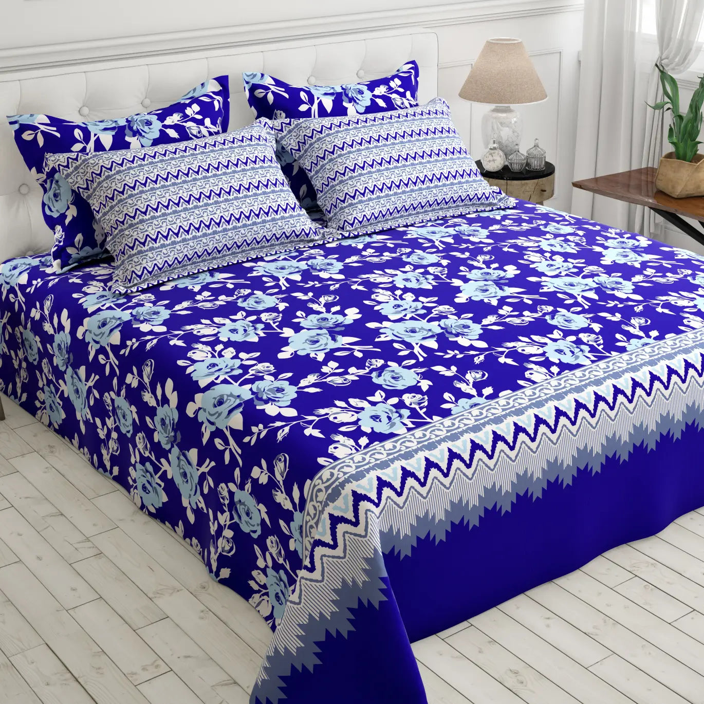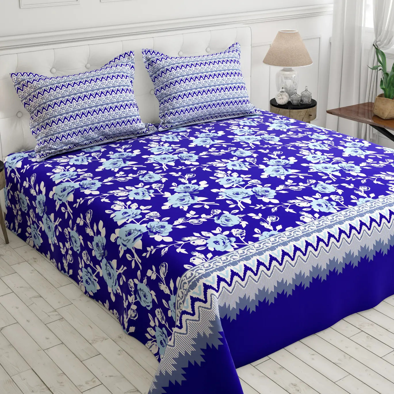 Transform your bedroom into a serene oasis with the Xara Blue Floral Stripe Bed Sheet Set. Crafted from soft cotton blended fabric, this set features a stunning blue floral pattern elegantly bordered by striped accents. The breathable material ensures a comfortable night's sleep, while the stylish design adds a touch of sophistication to your decor. Elevate your bedding experience and embrace tranquility with this beautiful bed sheet set that’s perfect for any season.