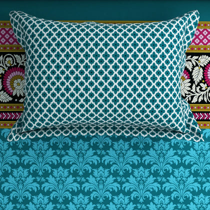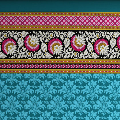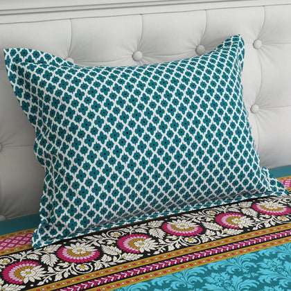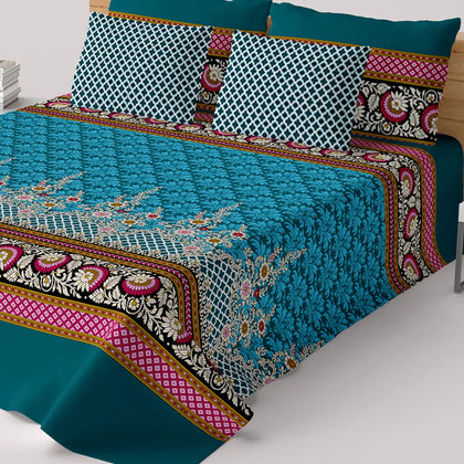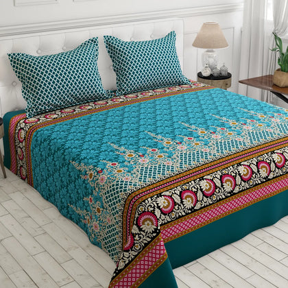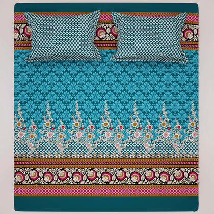 Transform your bedroom with the Xara Teal Floral Stripe Bed Sheet Set. Crafted from soft cotton-blend fabric, this elegant set features a refreshing teal color adorned with vibrant floral patterns and stylish stripes on the border. Perfect for adding a touch of sophistication and comfort, it ensures a cozy night's sleep while enhancing your decor. Elevate your sanctuary with the ideal combination of style and durability—your dream bedding awaits!