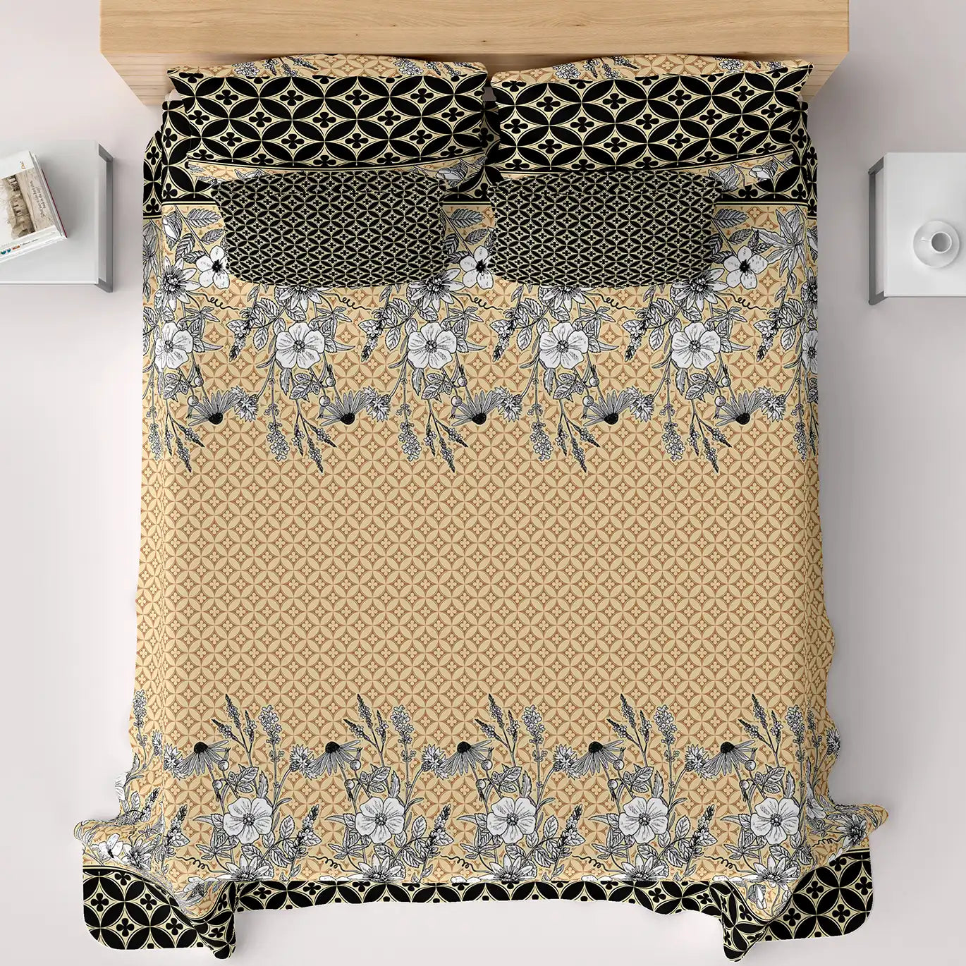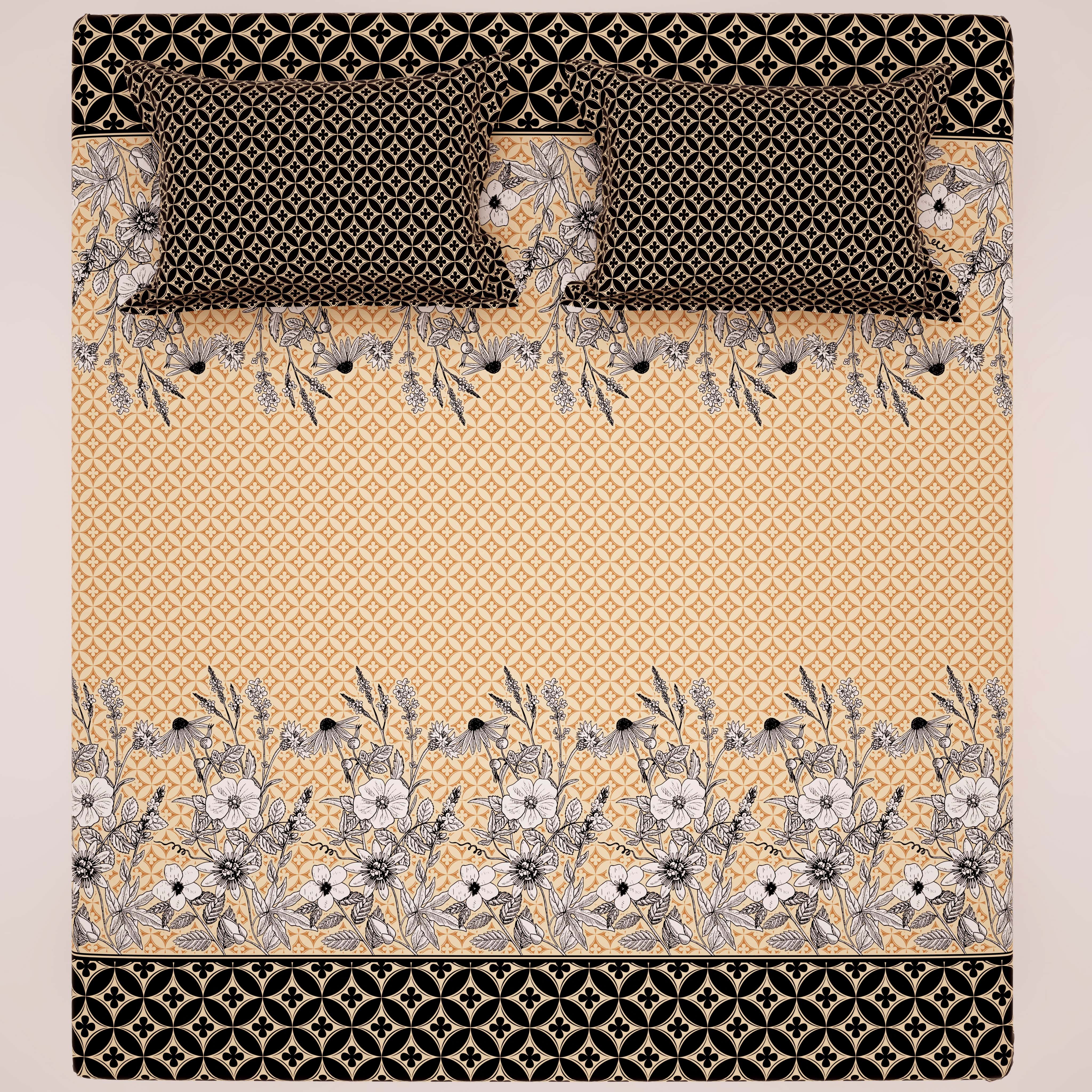 Xara Black Floral Striped Border Bed Sheet Set - 8518-19