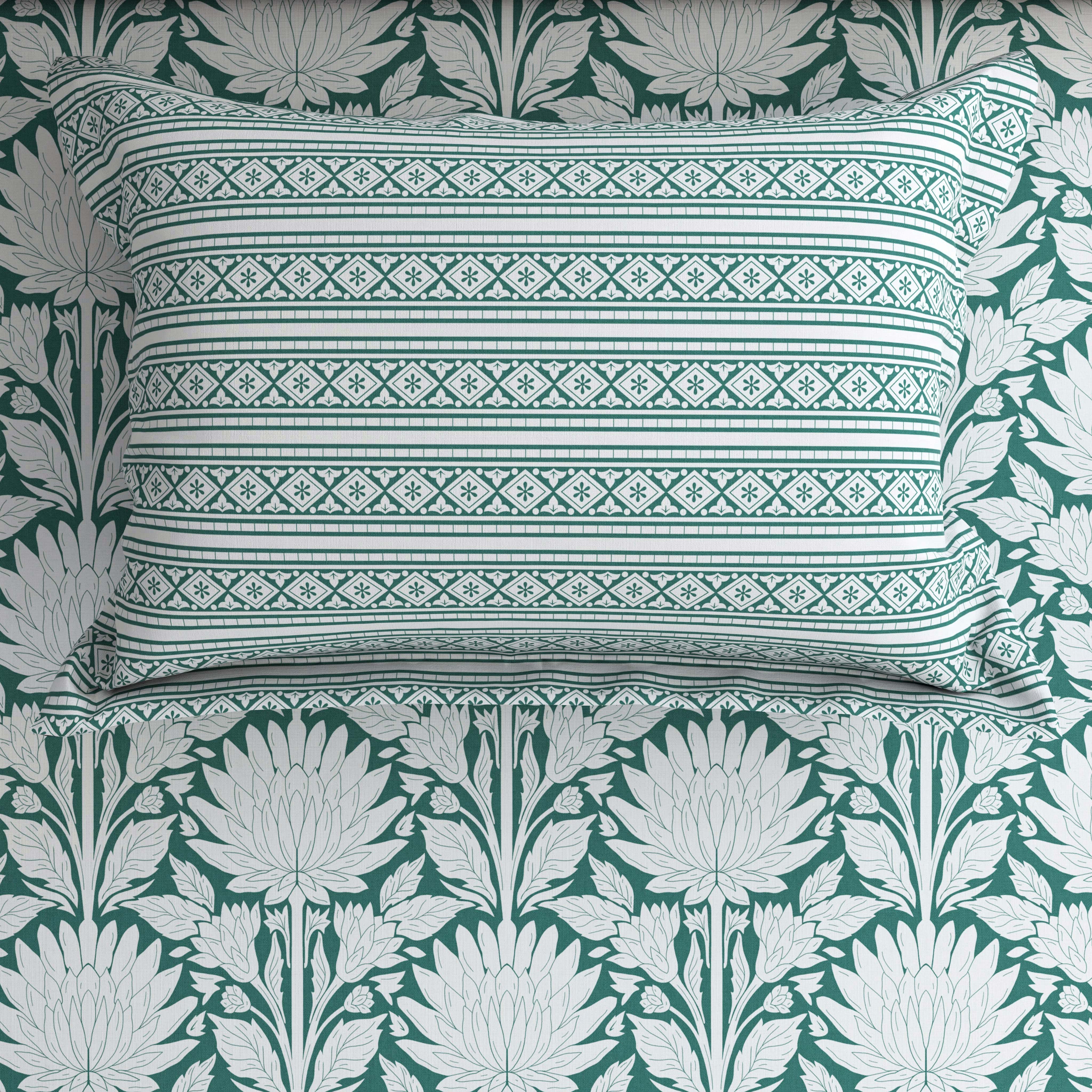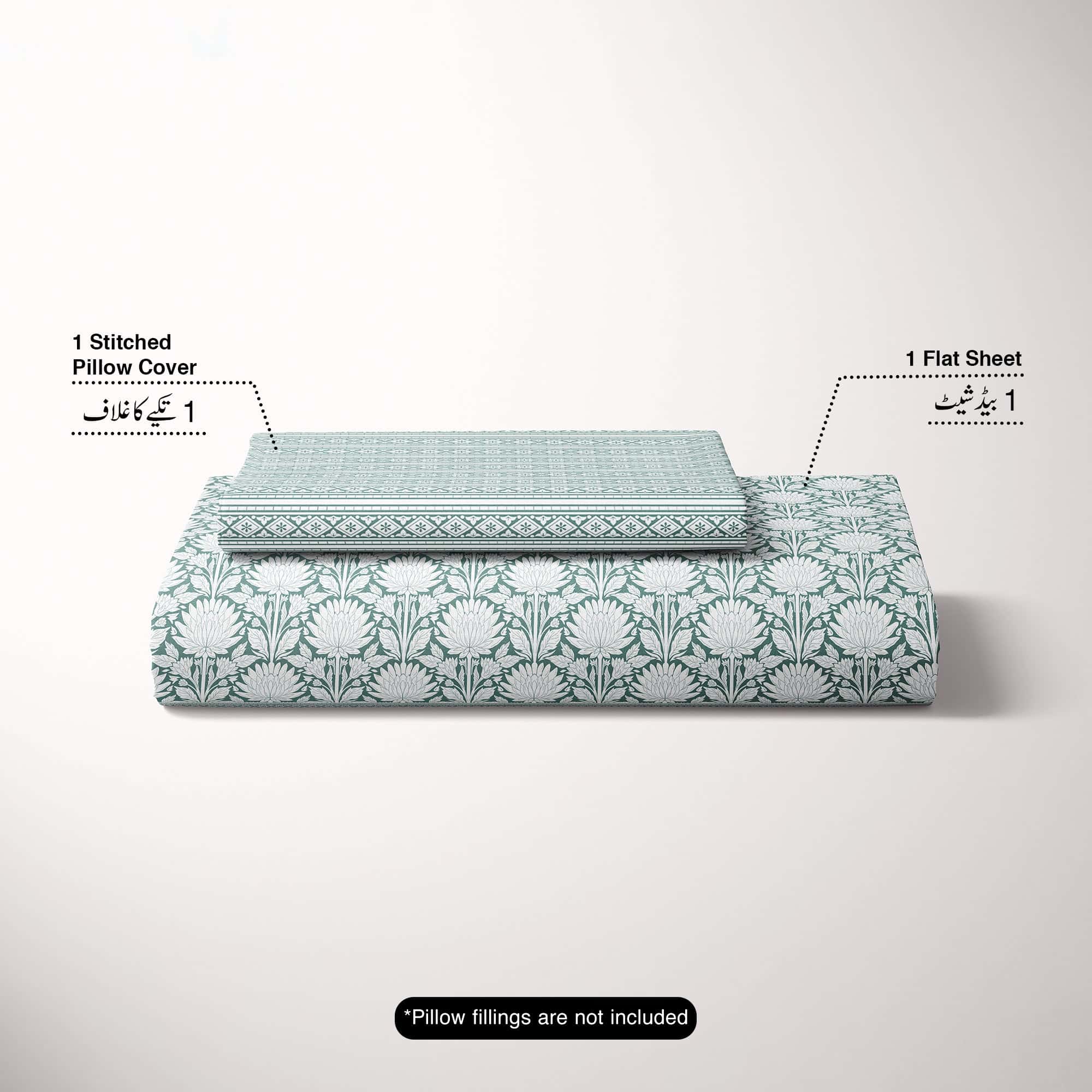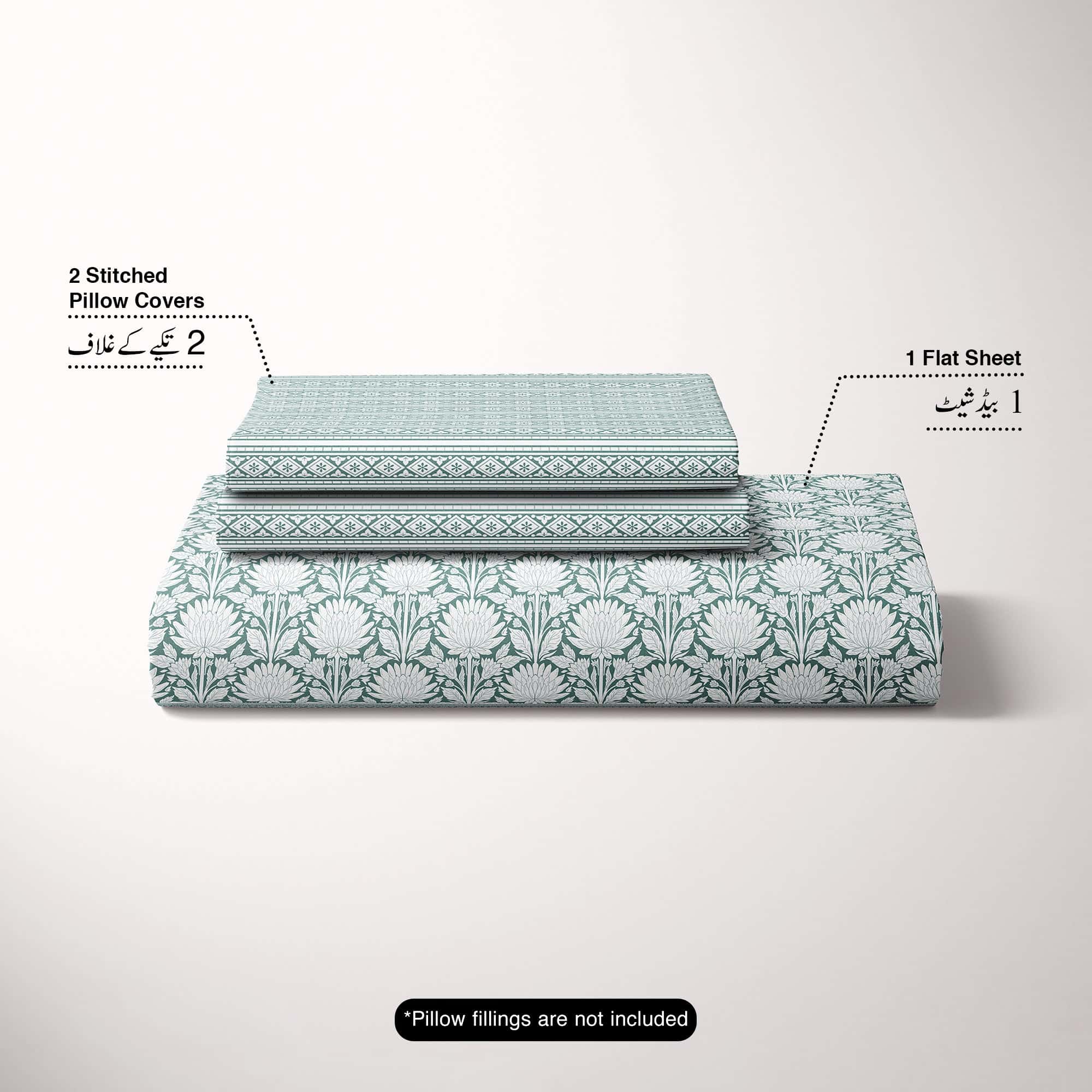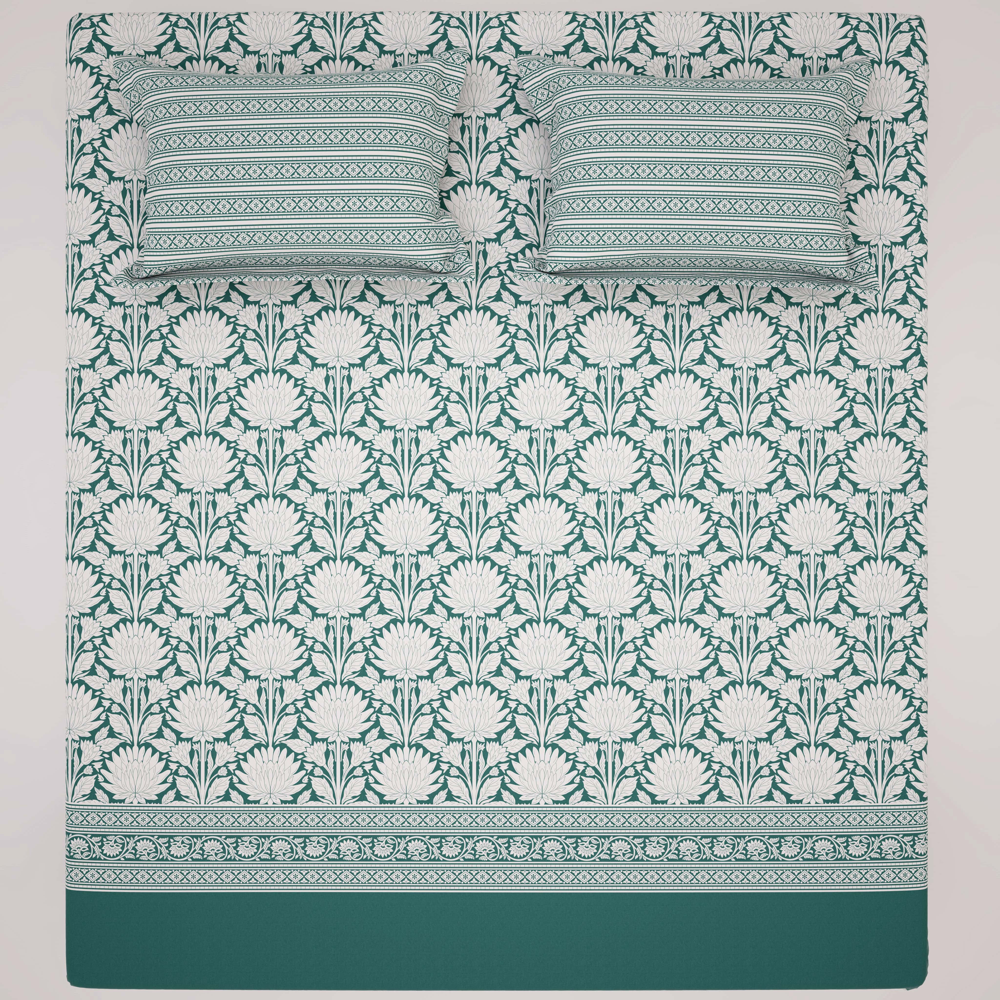 Xara Green Floral Chevron Bed Sheet Set - 8569-70
