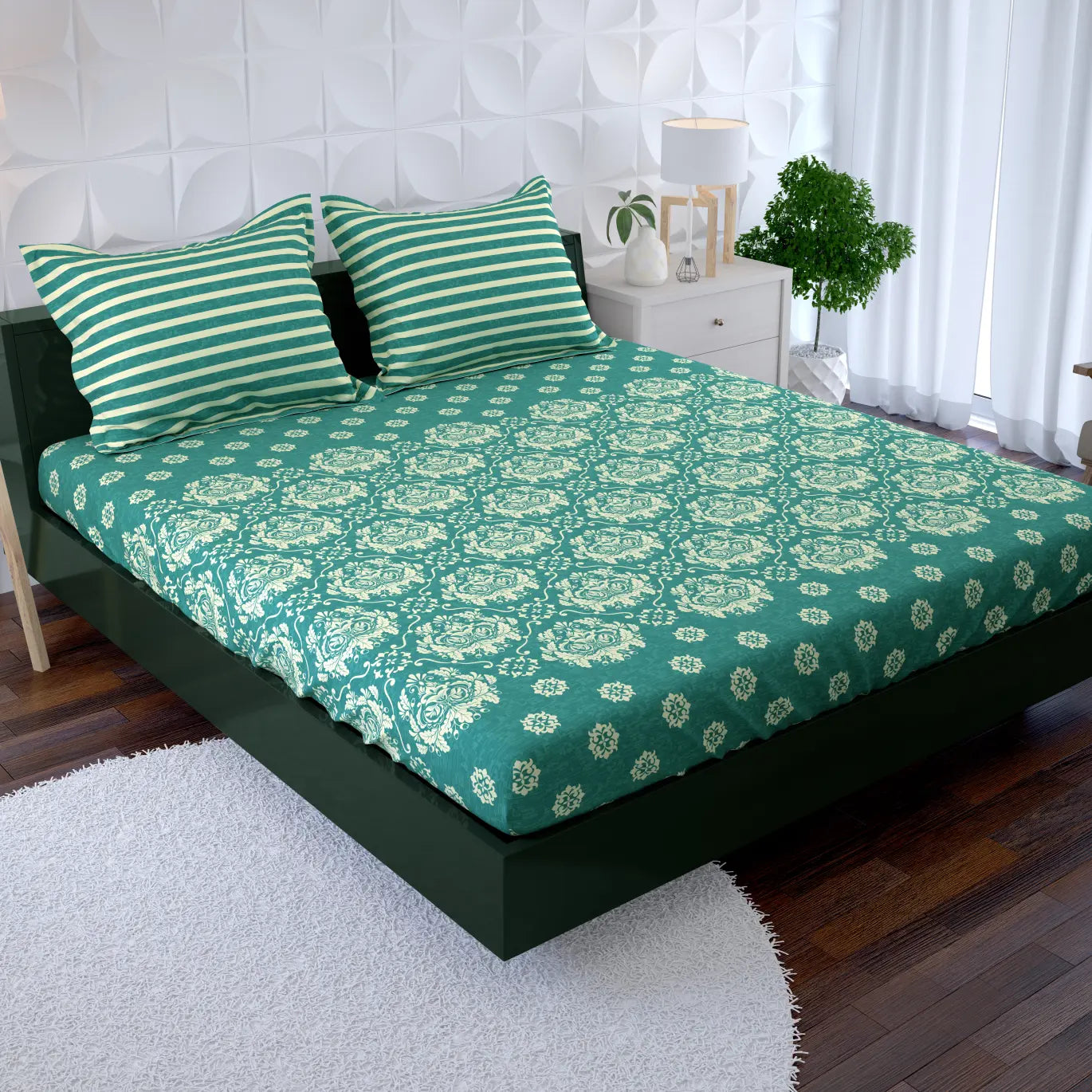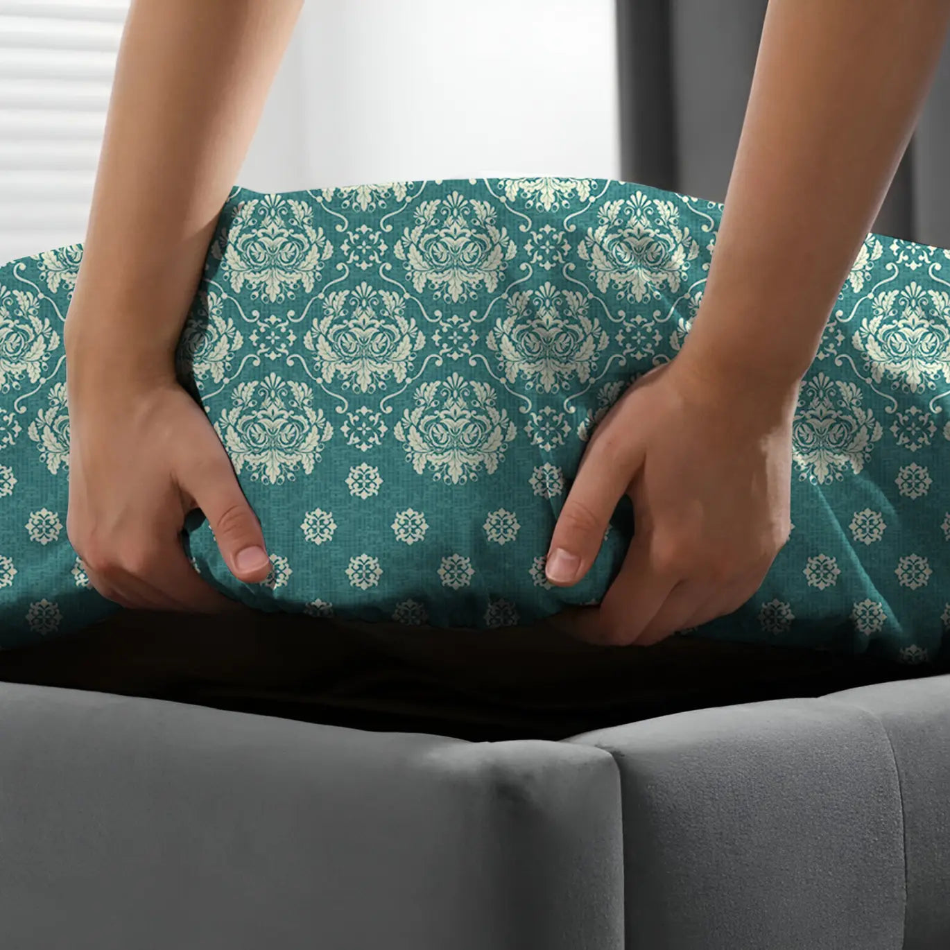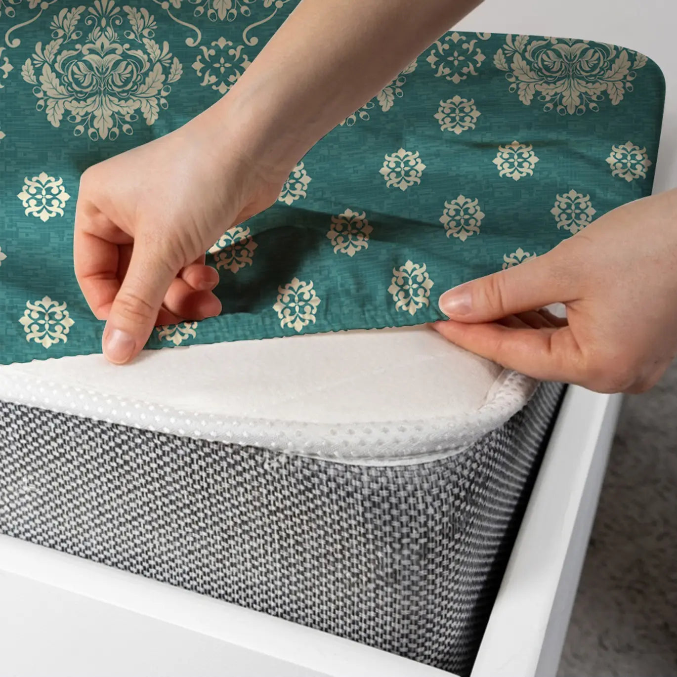 Indulge in comfort with our Fitted Bed Sheet Set in a soothing Teal/Turquoise on Cream/Beige design, crafted from premium Xara fabric. This soft cotton blended (poly cotton) set offers a perfect blend of style and durability, making your bed a cozy retreat. With its breathable material and elasticized corners, it promises a snug fit and easy maintenance. Upgrade your bedding collection with this chic and inviting design that complements any decor.
