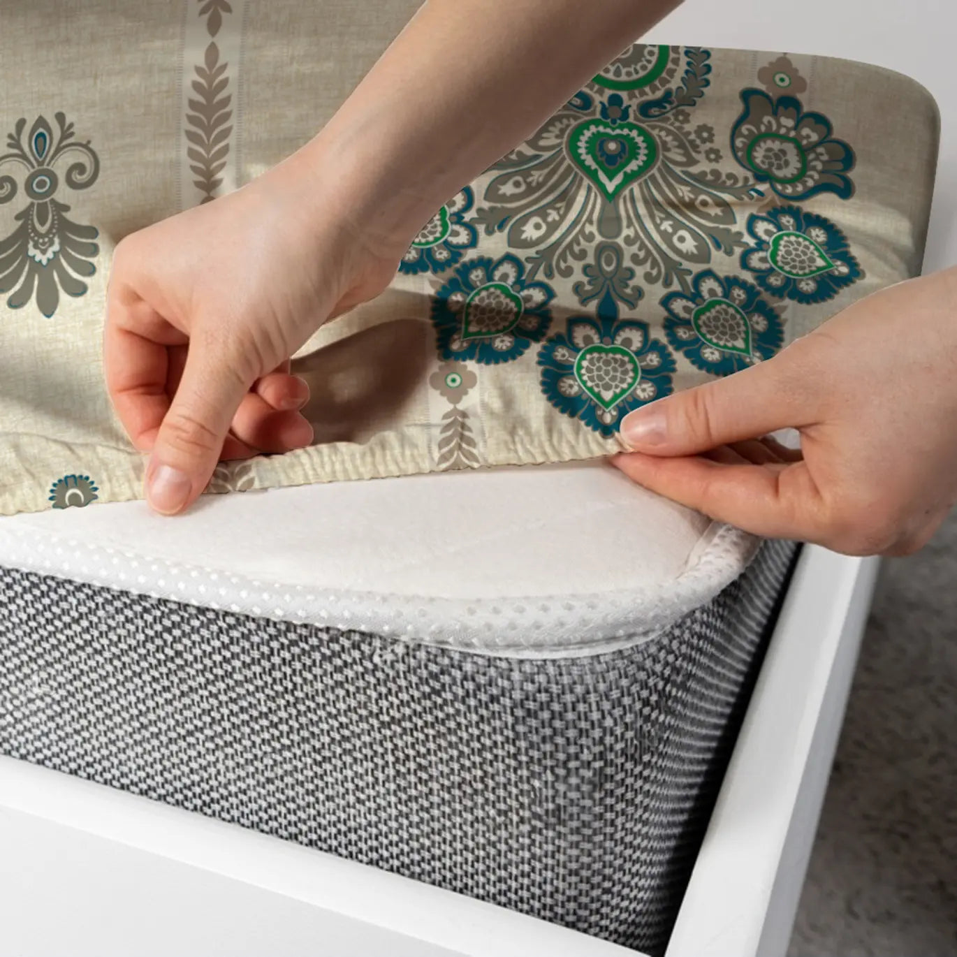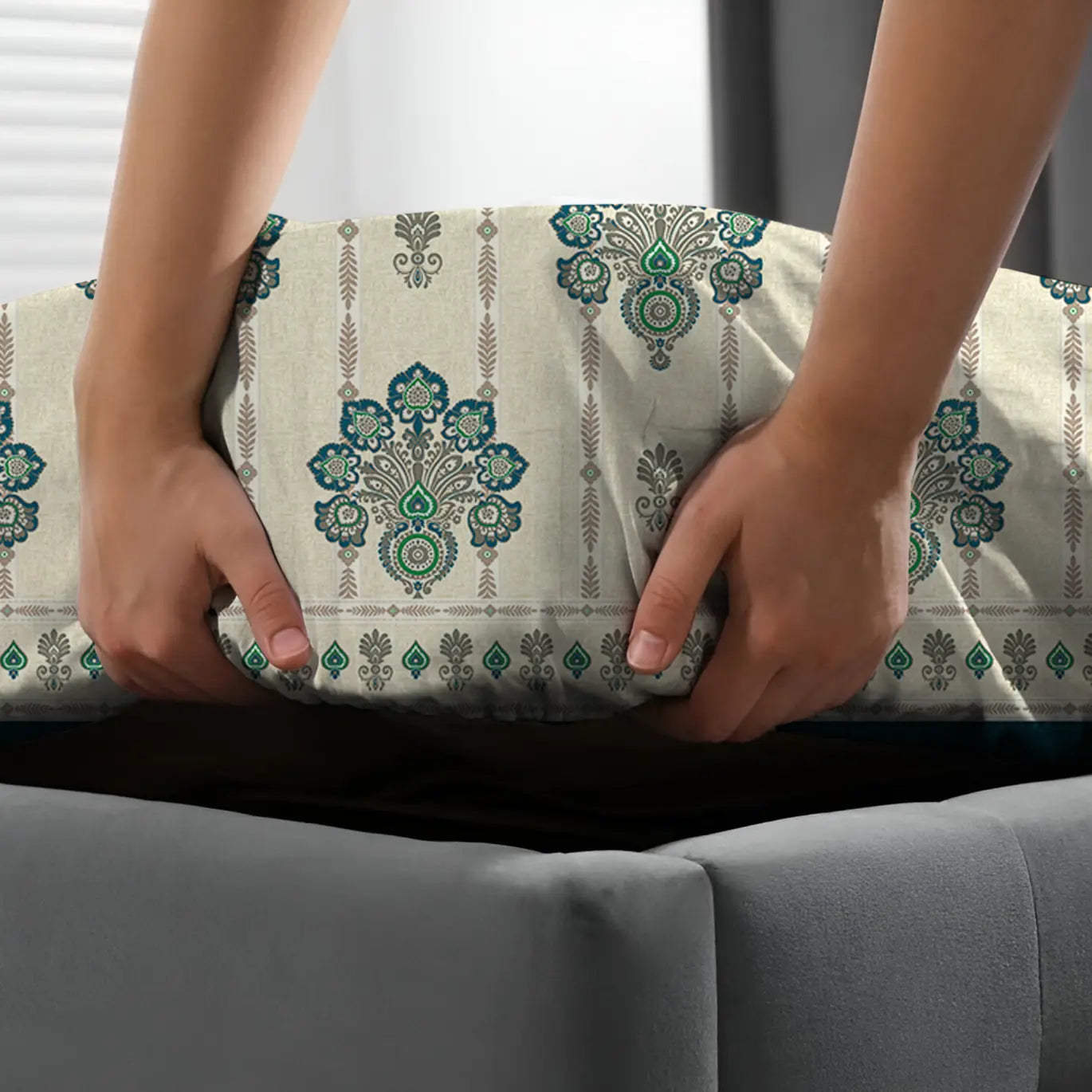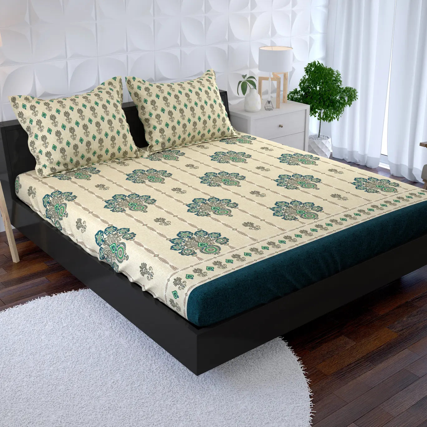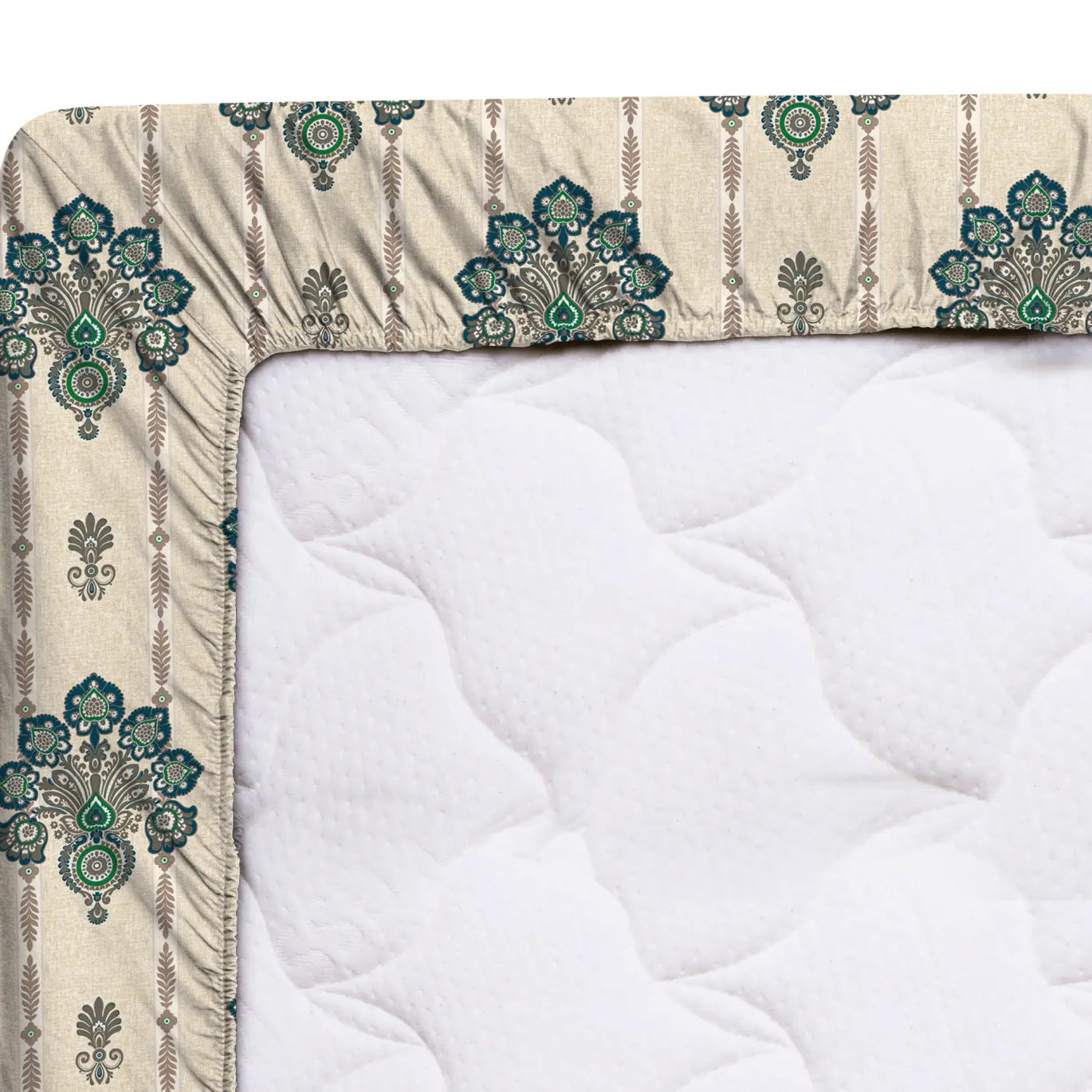 Experience comfort with our Cream/Beige Fitted Bed Sheet Set in a soothing Green/Brown design. Crafted from premium Xara fabric, this poly cotton blend offers breathability and softness for a restful night's sleep. The stylish colors blend seamlessly with any decor, providing a cozy and elegant touch to your bedroom. Easy to care for and designed for a snug fit, this sheet set ensures you wake up refreshed and ready to take on the day.